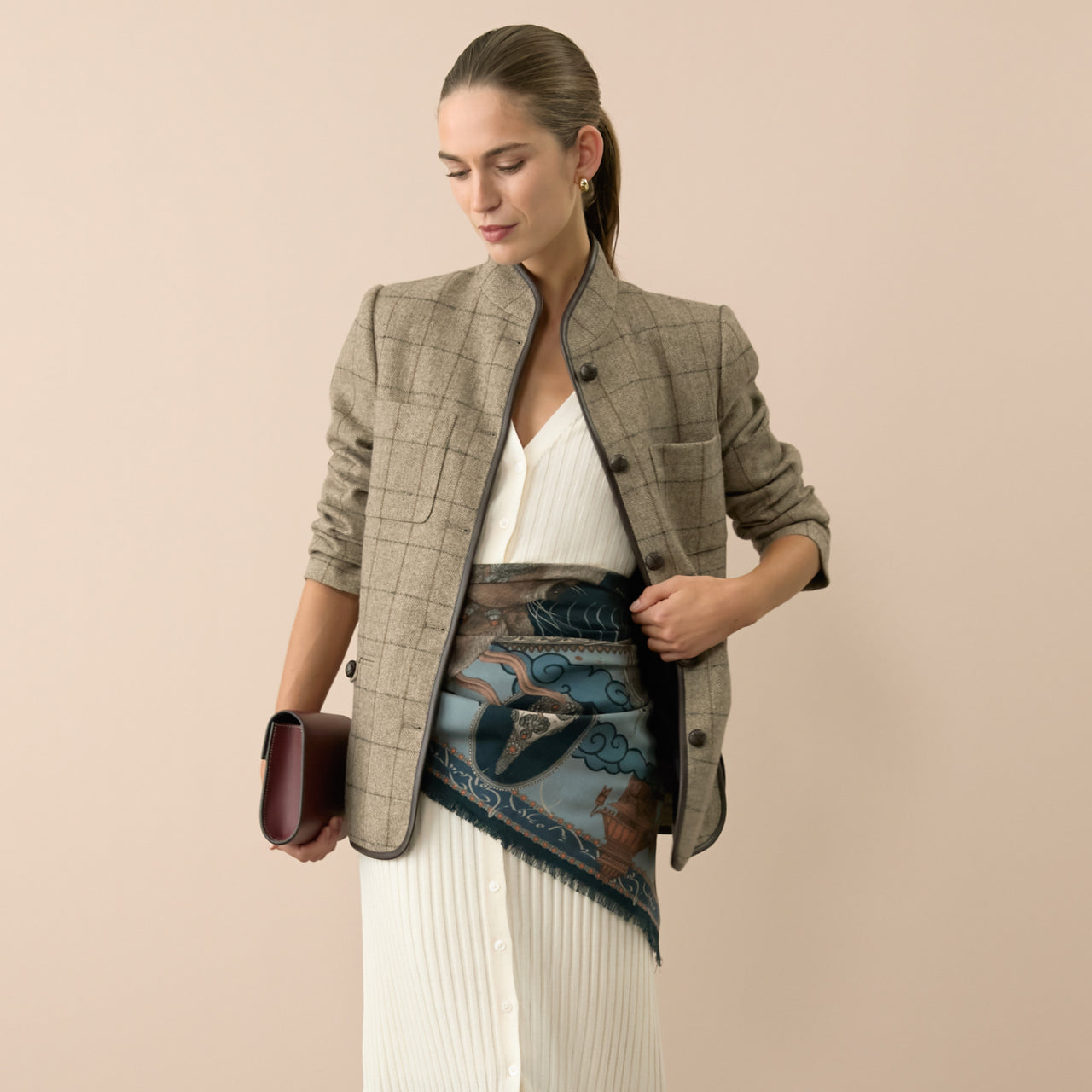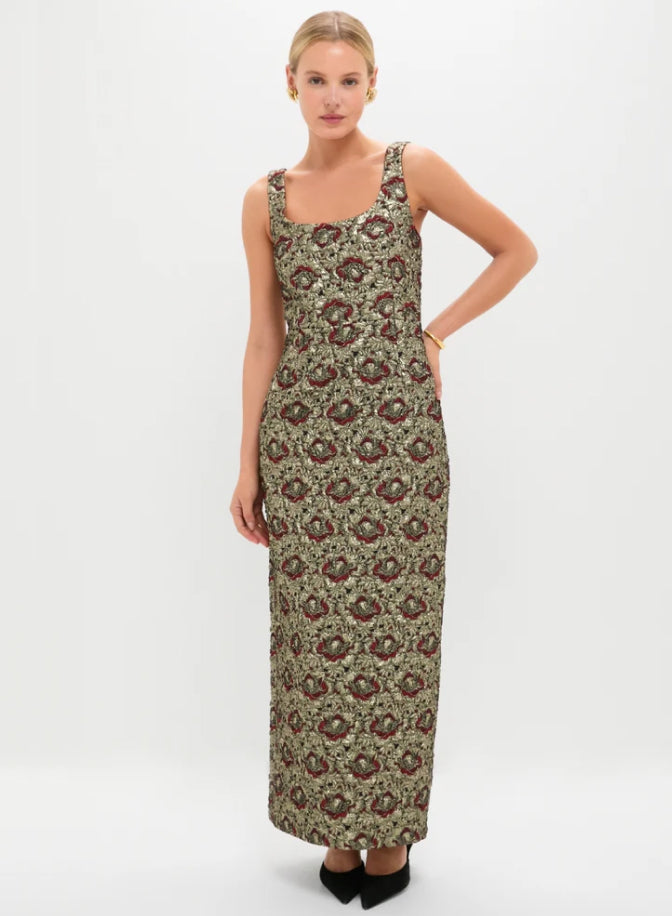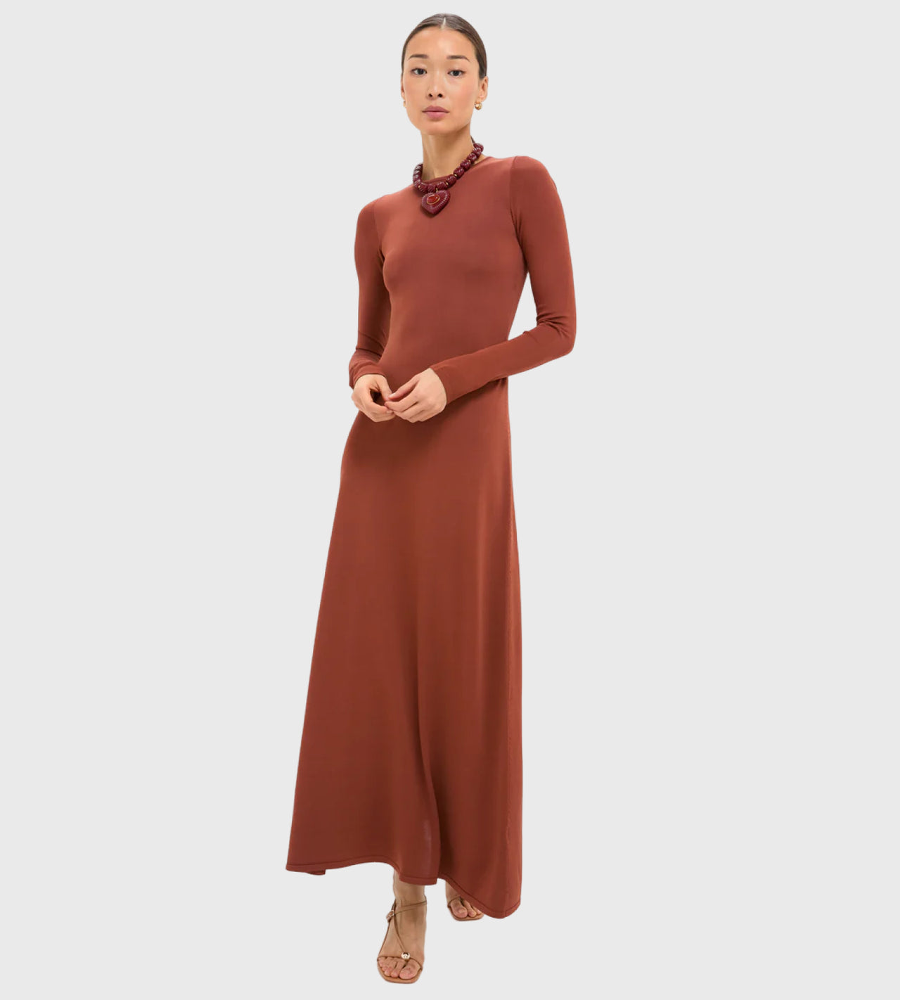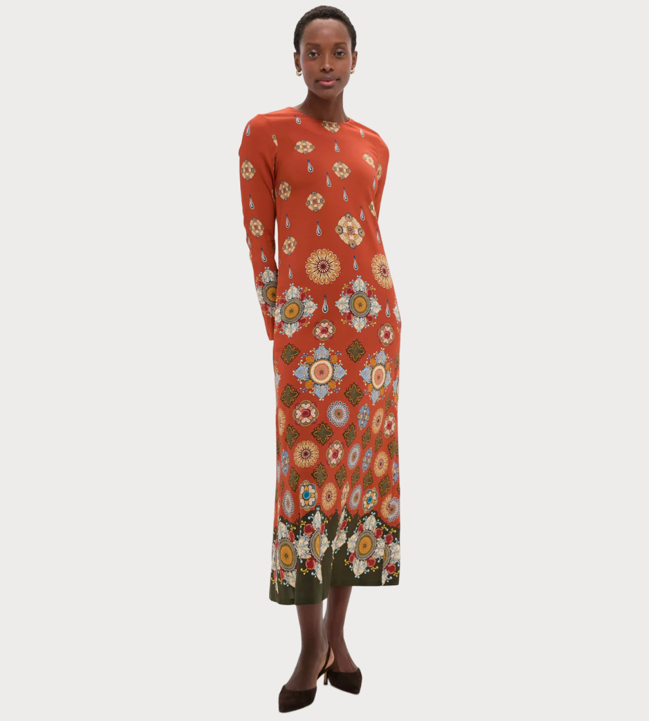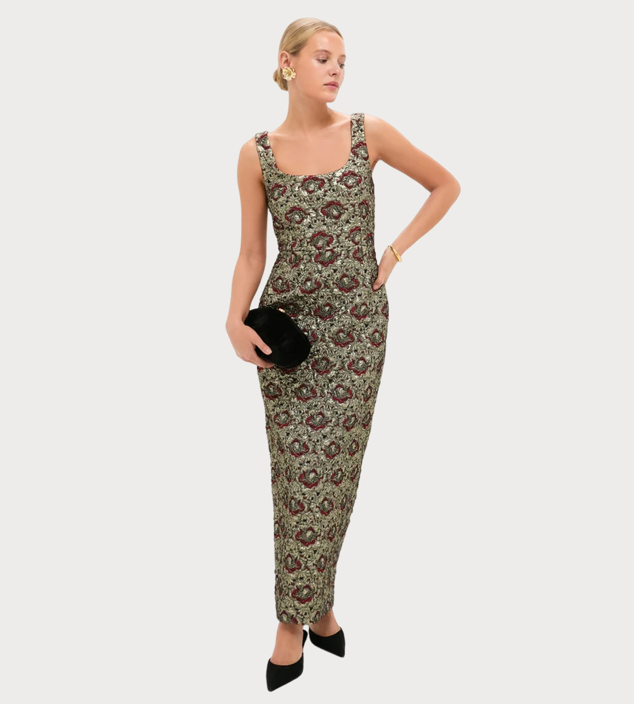A jacquard dress always makes a bold statement, but especially in the cold weather months. Wear this incredible dress with pared-back accessories that really allow for it to shine.
