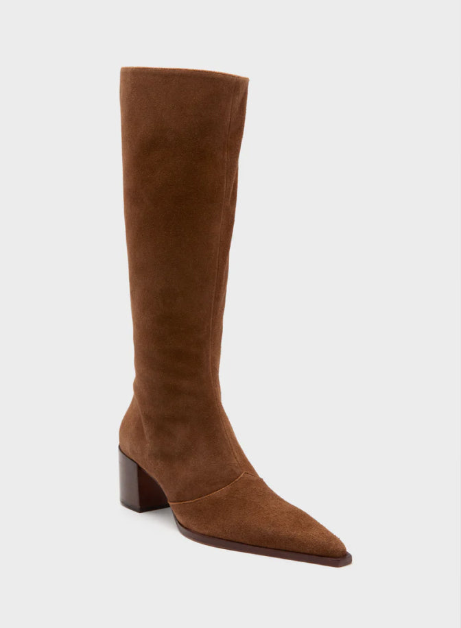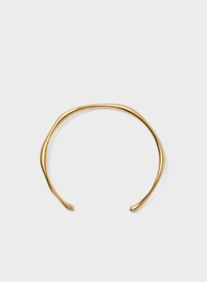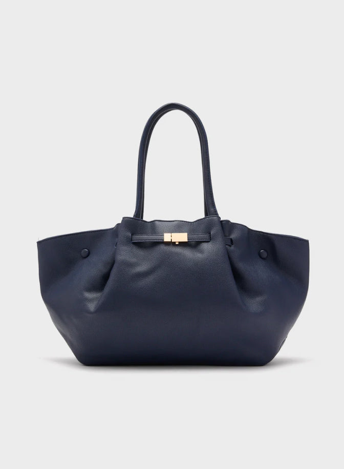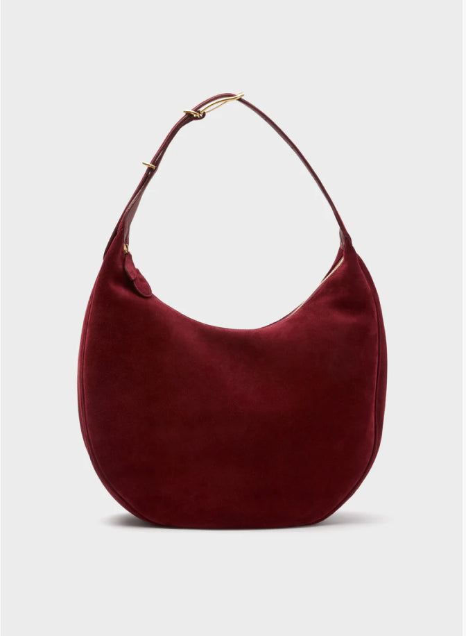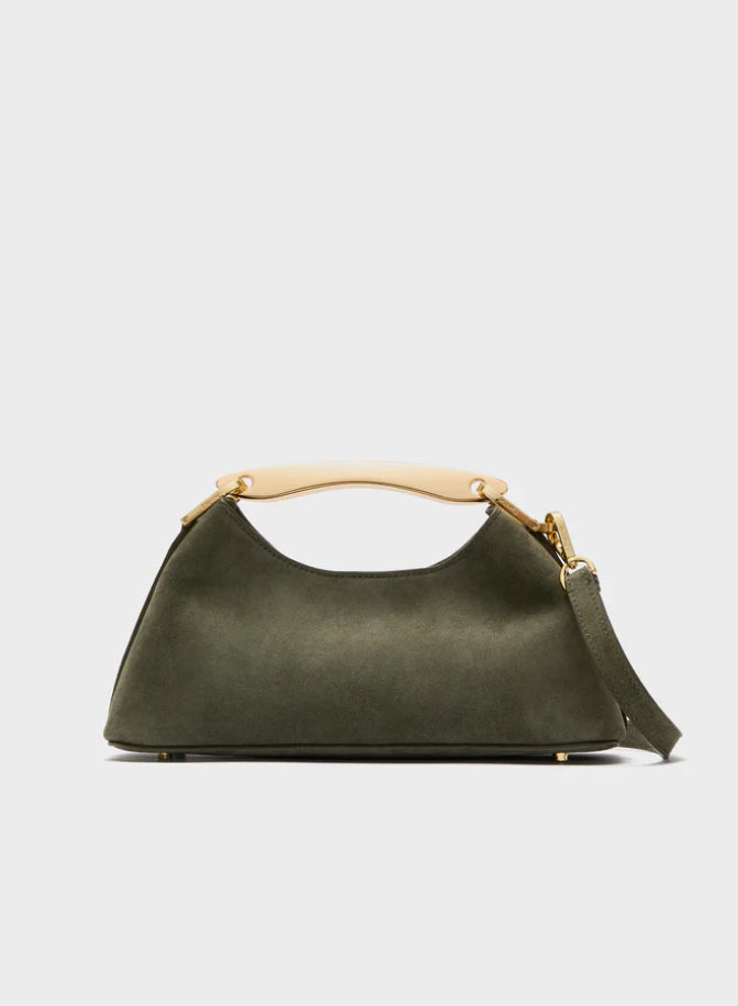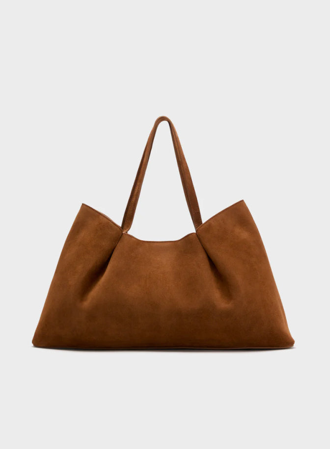 A warm, earthy palette of rich browns does wonders in colder weather. Play with organic shapes and textures with a suede tote with some dimension to it. A tight collar or statement necklace finishes the look.