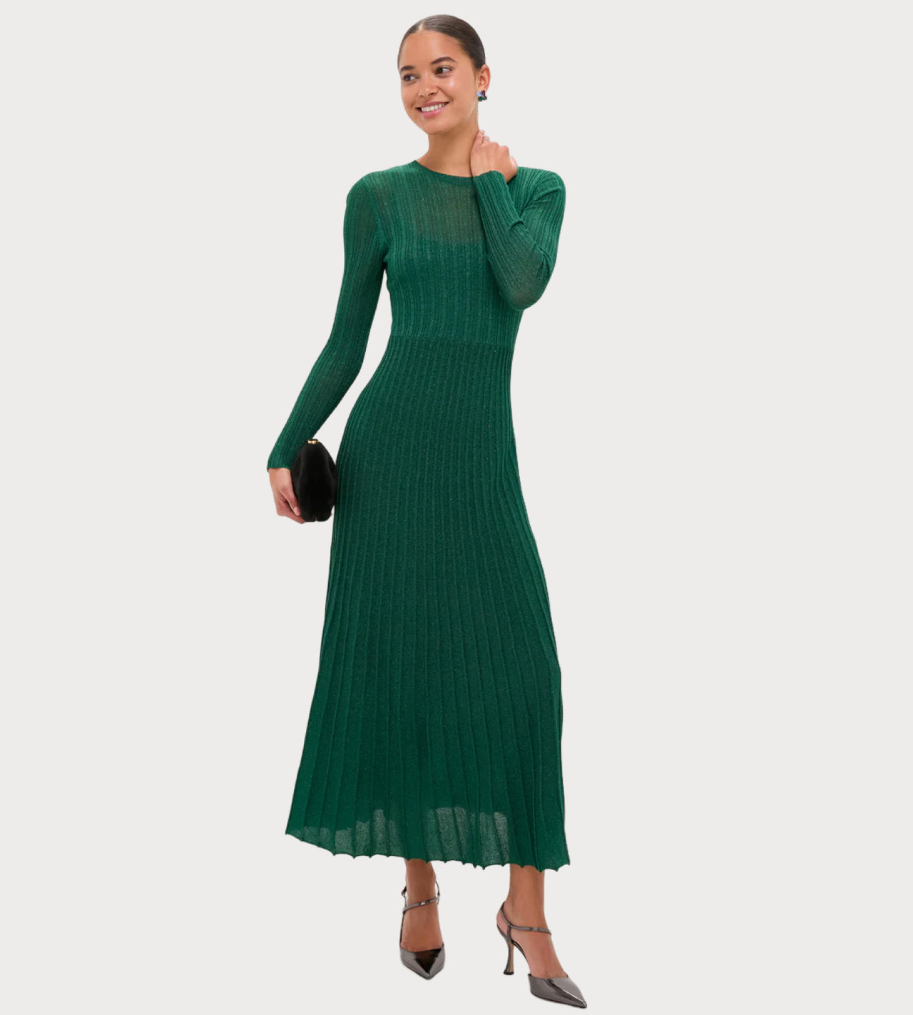 This under-$200 dress is the easy, throw-on-and-go dress made for the holidays. Add an extra touch of sparkle with the shimmer knit and pair it with stylish, yet understated, accessories.