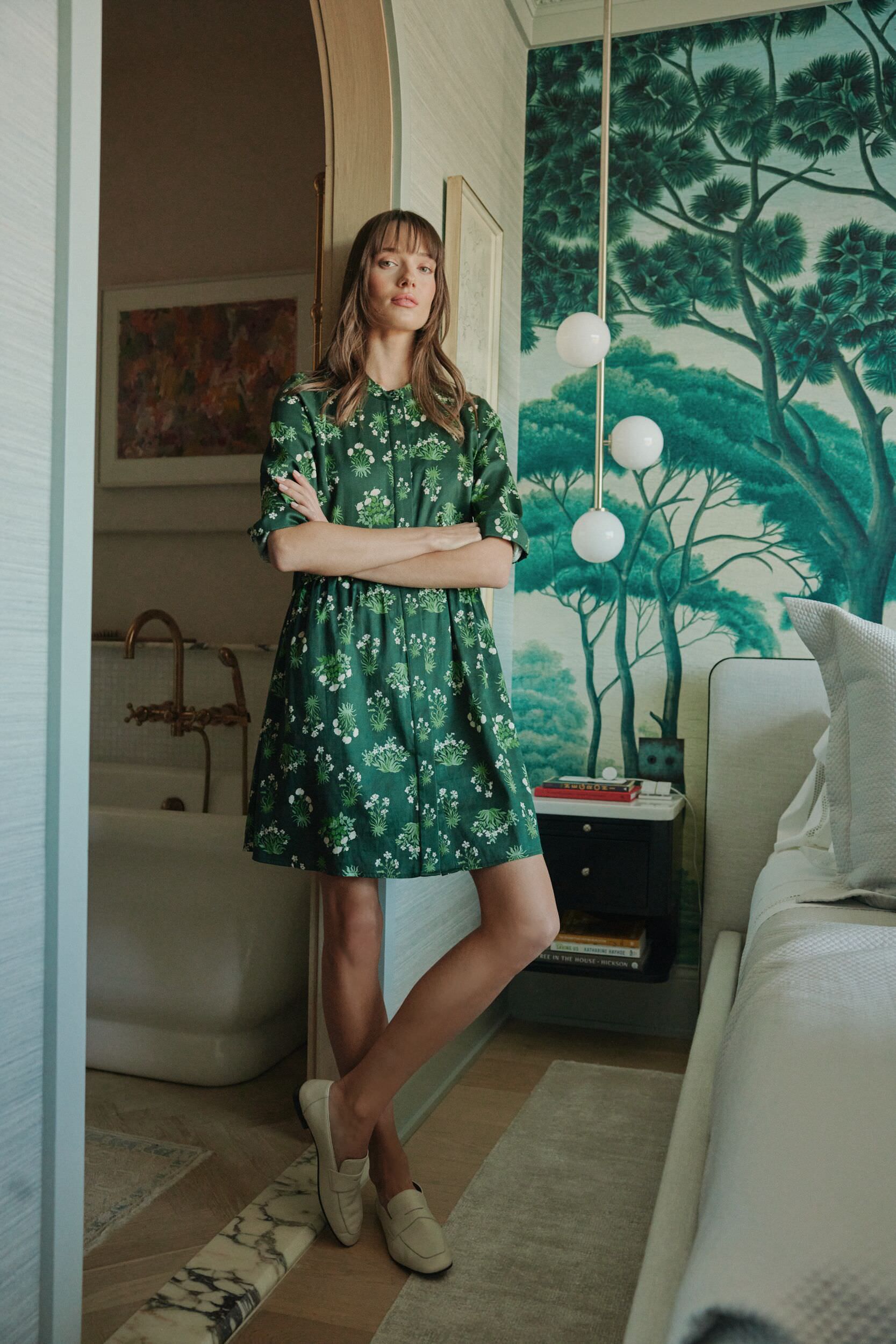Our belted Chloe dress is updated in a fresh, abstract floral. We love the balance of the muted green base with pale pink blooms as a nod to spring. With glam sunglasses and chic flats, you’ll get your movie star moment and own the street style game.