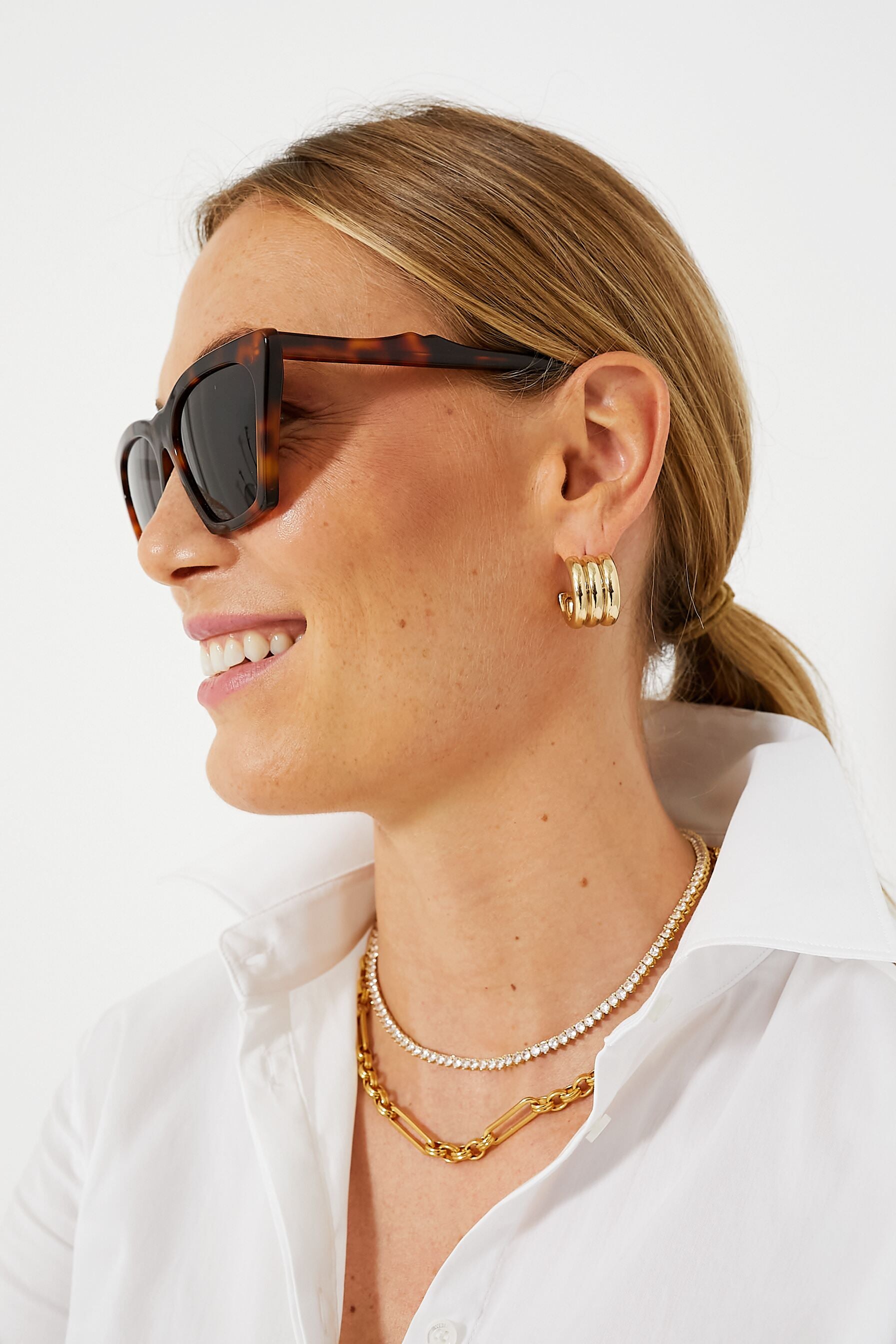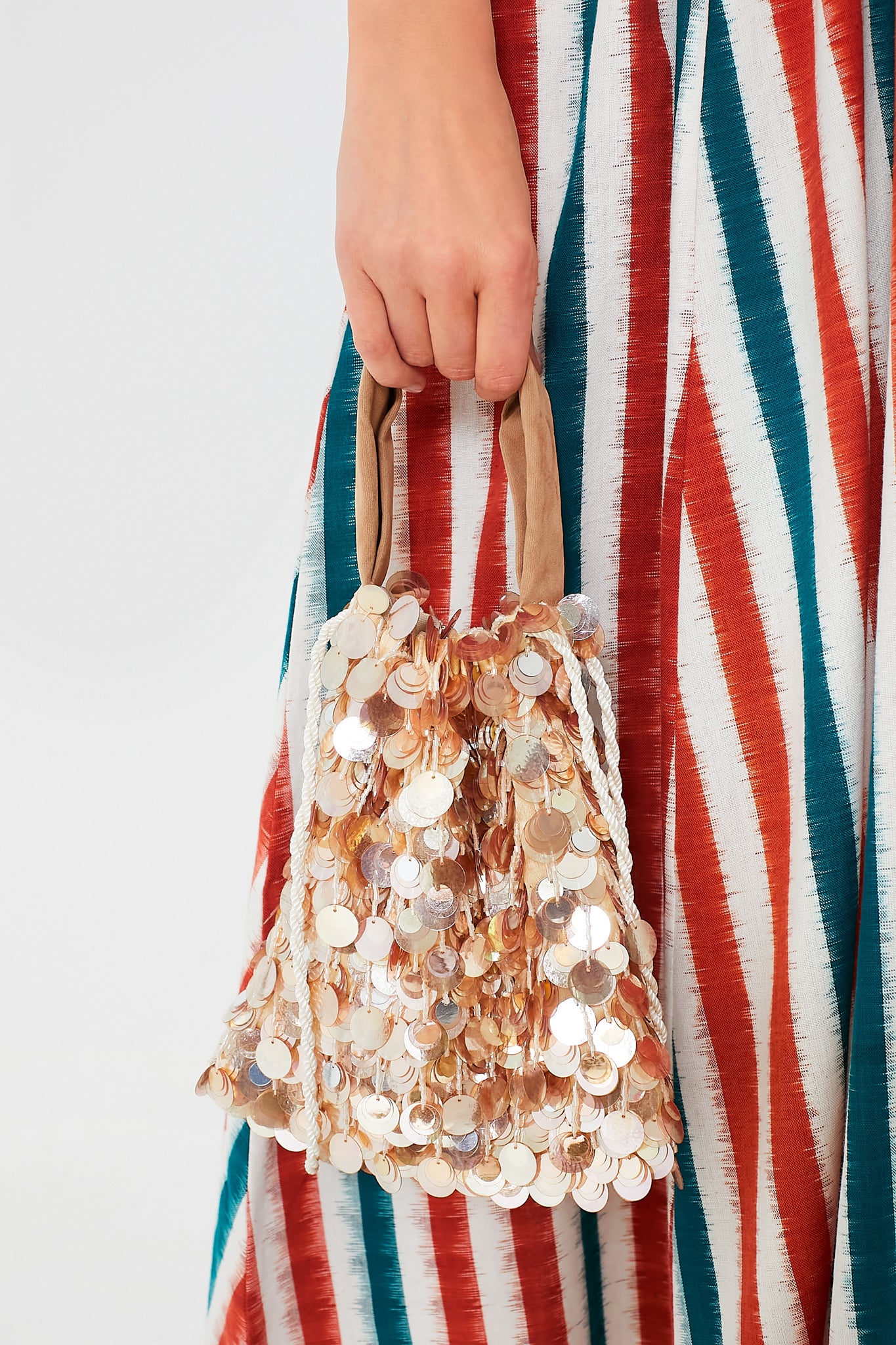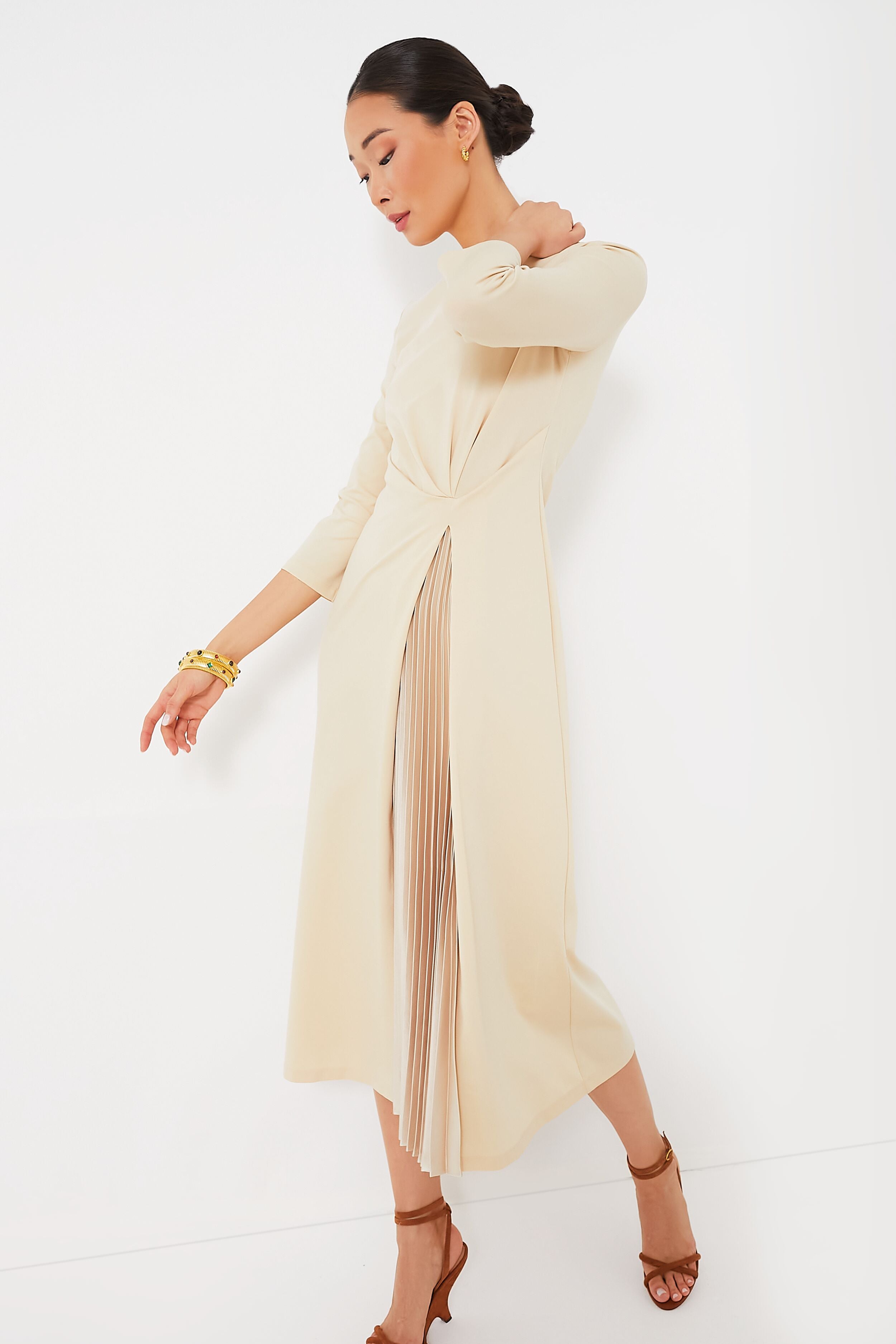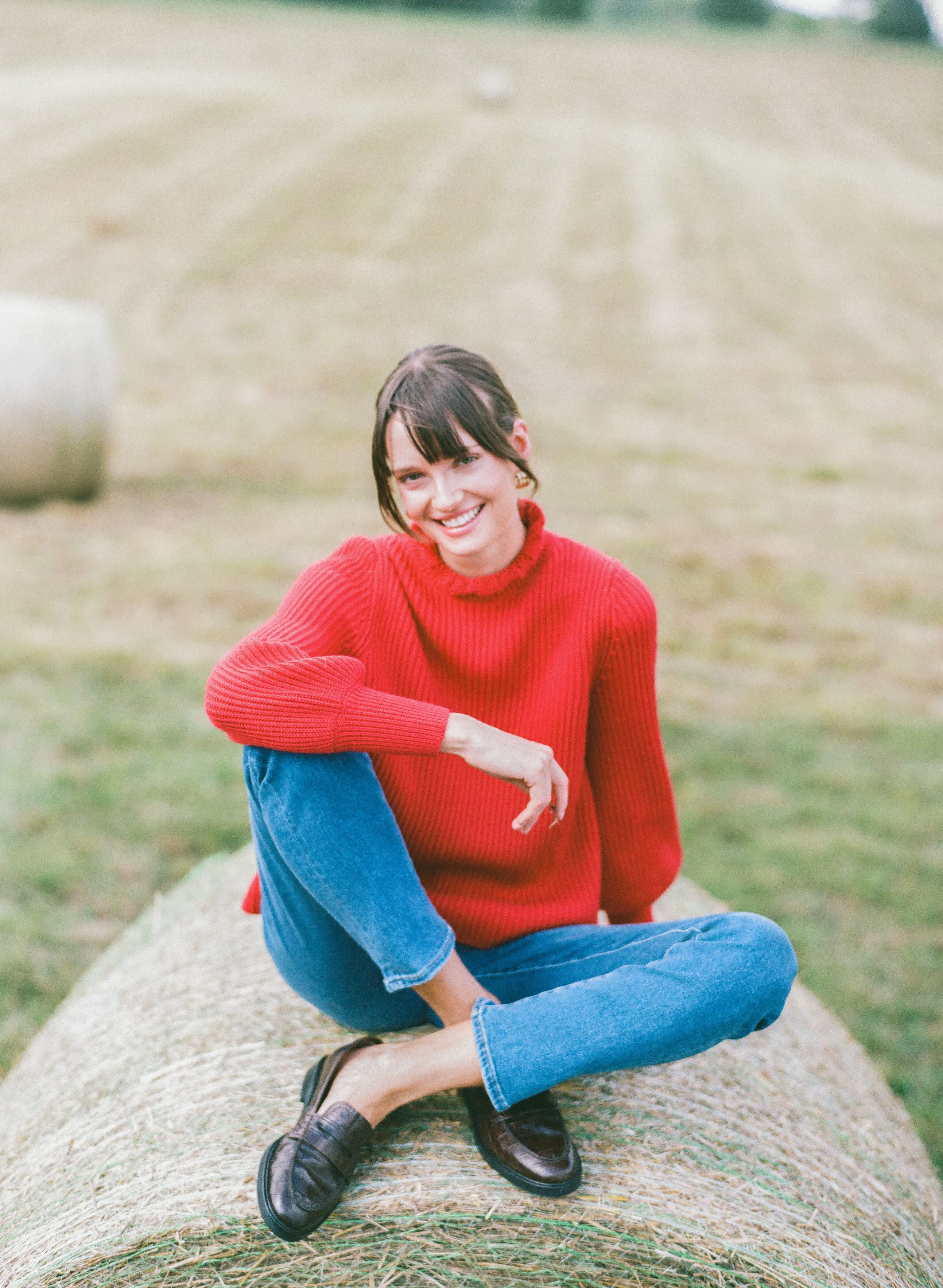 Metallic knits are of the moment. This glistening gold cable knit elevates a classic midi, and wears easily from desk time to dinner time with a quick swap of accessories.