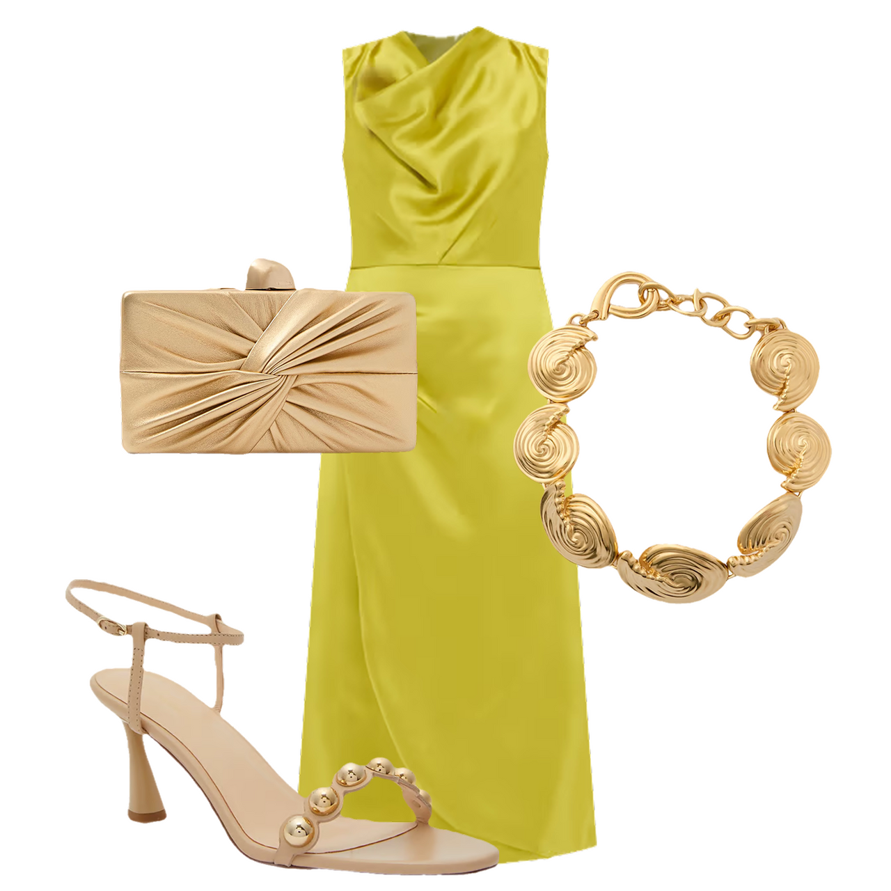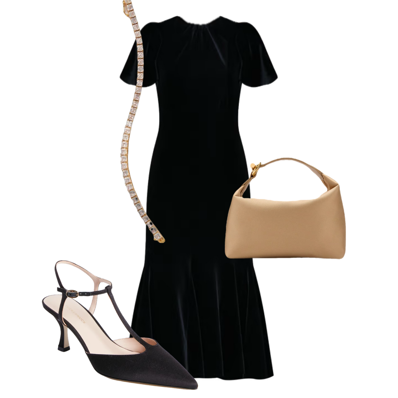Cocktail dressing isn’t about having a dozen statement pieces—it’s about the right ones, always ready. With a classic black heel, a strappy sandal, a metallic evening bag, diamond studs, and a statement cuff, you’re set. Everything else is layering in personality.
