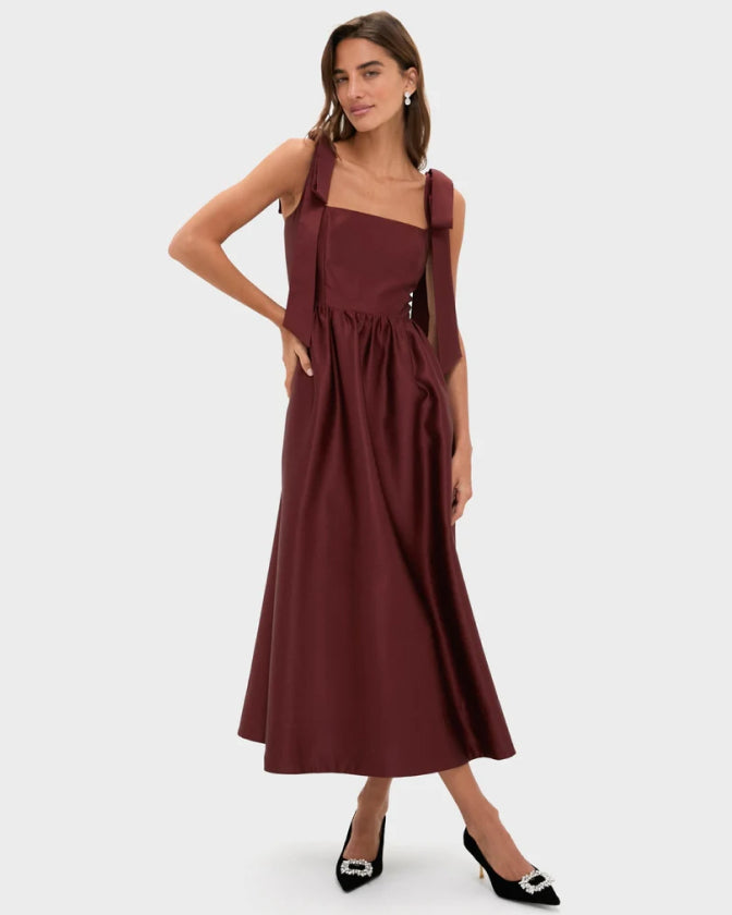 In a dreamy black taffeta, this dress is a classic, polished look you can wear in any season.