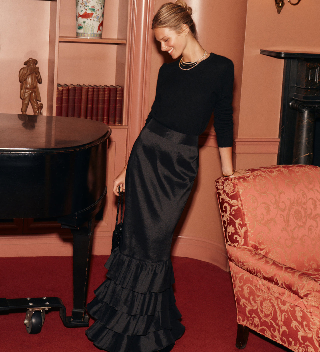 Our forever style icon, Carolyn Bessette-Kennedy, knew a thing or two about black tie dressing. This skirt was designed to look like one from her own wardrobe.