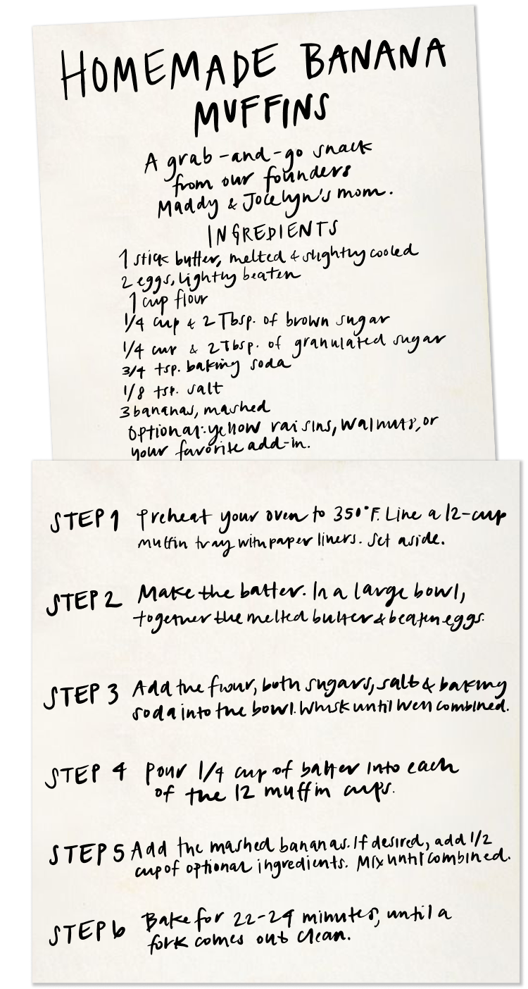 A grab-and-go snack from our founders Maddy and Jocelyn’s mom.