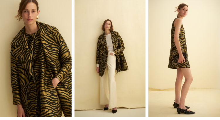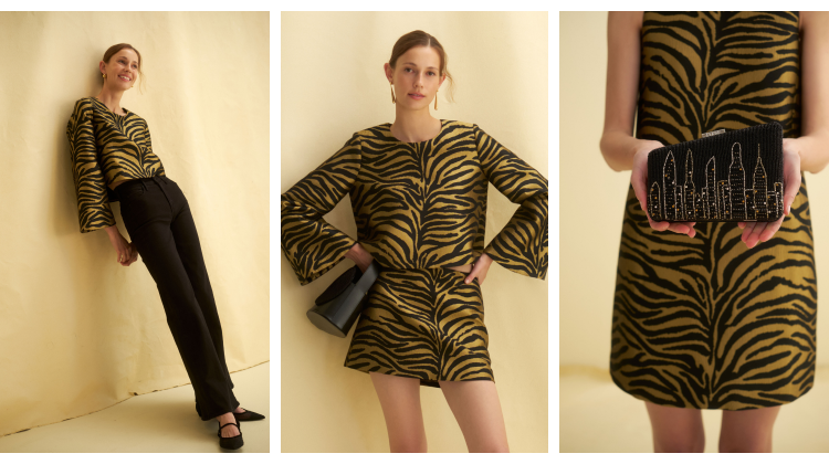 You aren’t just seeing stripes. Tiger print is the animal print of the moment, so let it do the talking. Treat it as a neutral and keep your accessories simple—it’ll add edge to any outfit, whether you’re wearing it with off-white, black, or as a set.