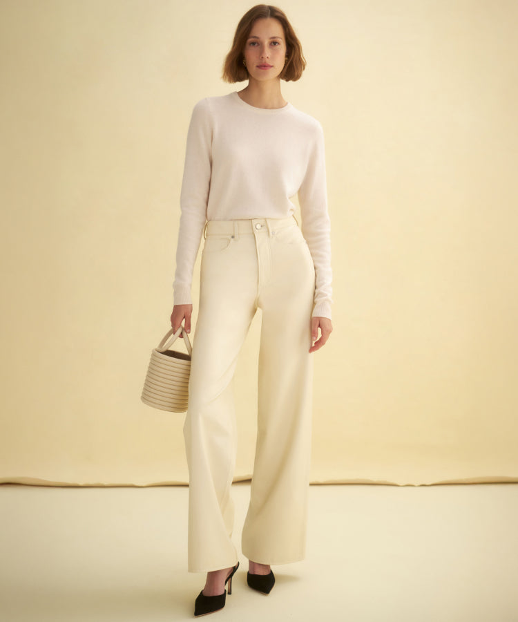 Black-on-black will forever be chic, but a tonal white is a refreshing palette cleanser as we move into winter. Try mixing textures—knits, jeans, silk, and leather—to add interest and dimension.