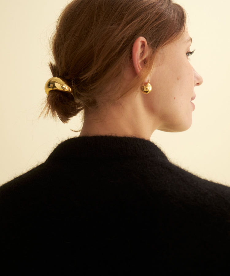 Forget sparkles and pearls. With accessories, achieve the low-key glam look with bold, modern earrings and structural bags.