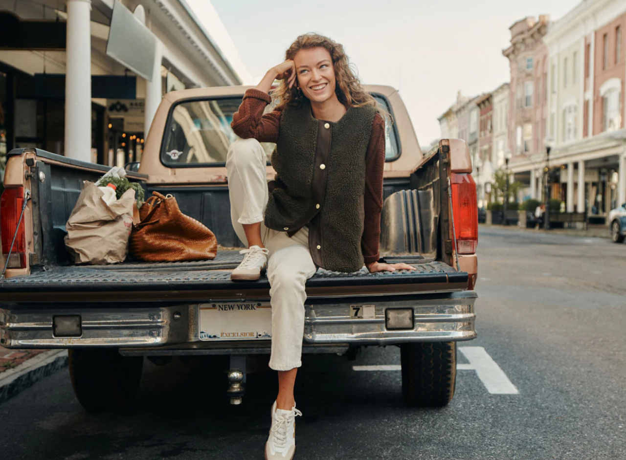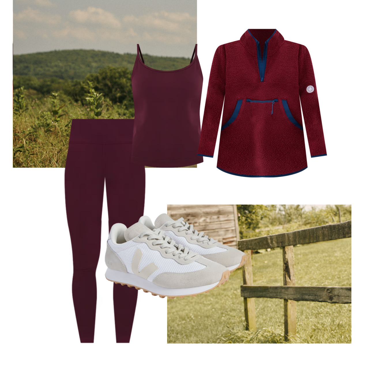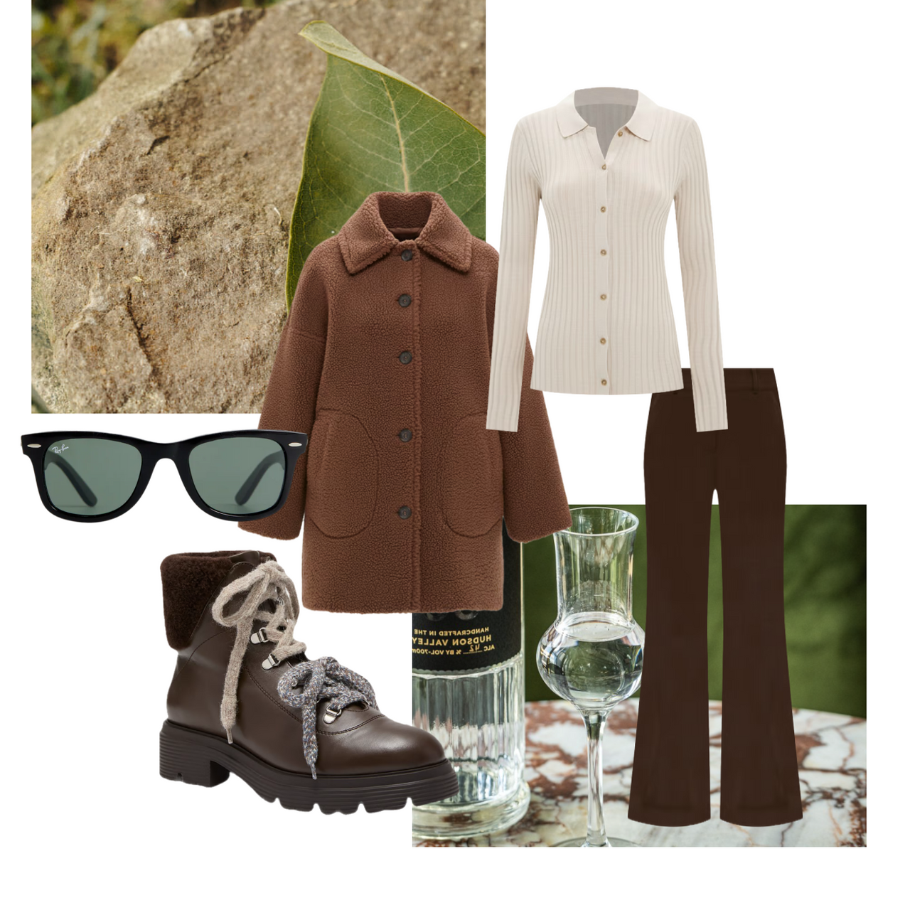 For an afternoon at Whitecliff Vineyard for artisanal, vegan wine, choose a casually cool, tonal look—cozy corduroys, cashmere, a teddy coat, and sneakers.