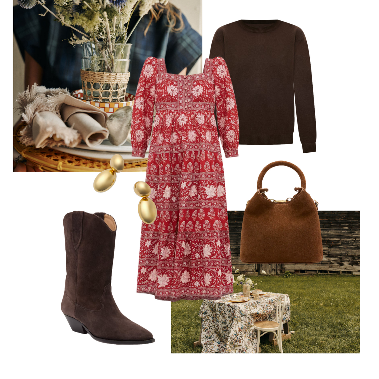 For dinner at Isabela, choose a bohemian, ditsy floral dress. Warm up your look by layering a chocolate brown cashmere sweater, gold jewelry, and suede accessories.