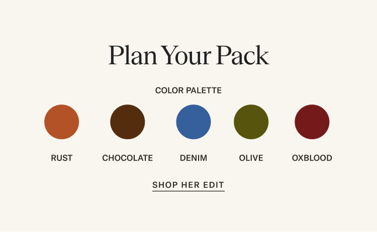 With 27 pieces you’ll wear throughout your stay, we’ve got everything you need organized by category.
