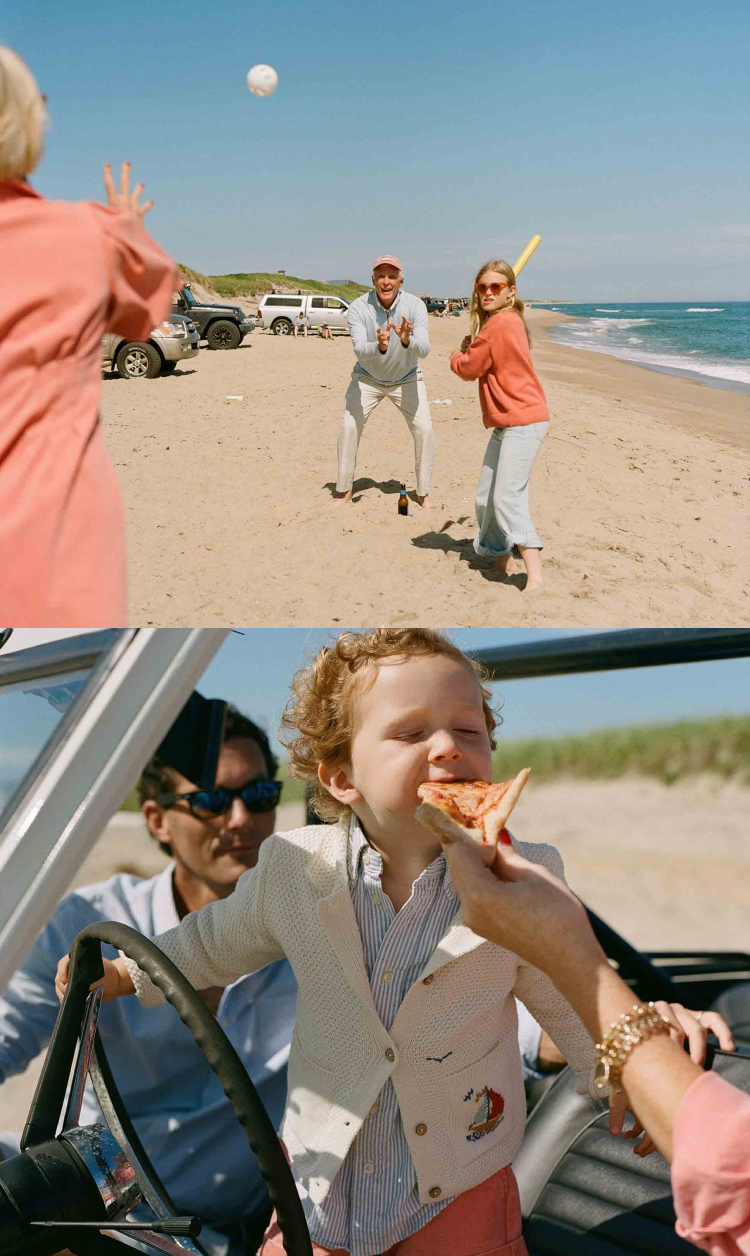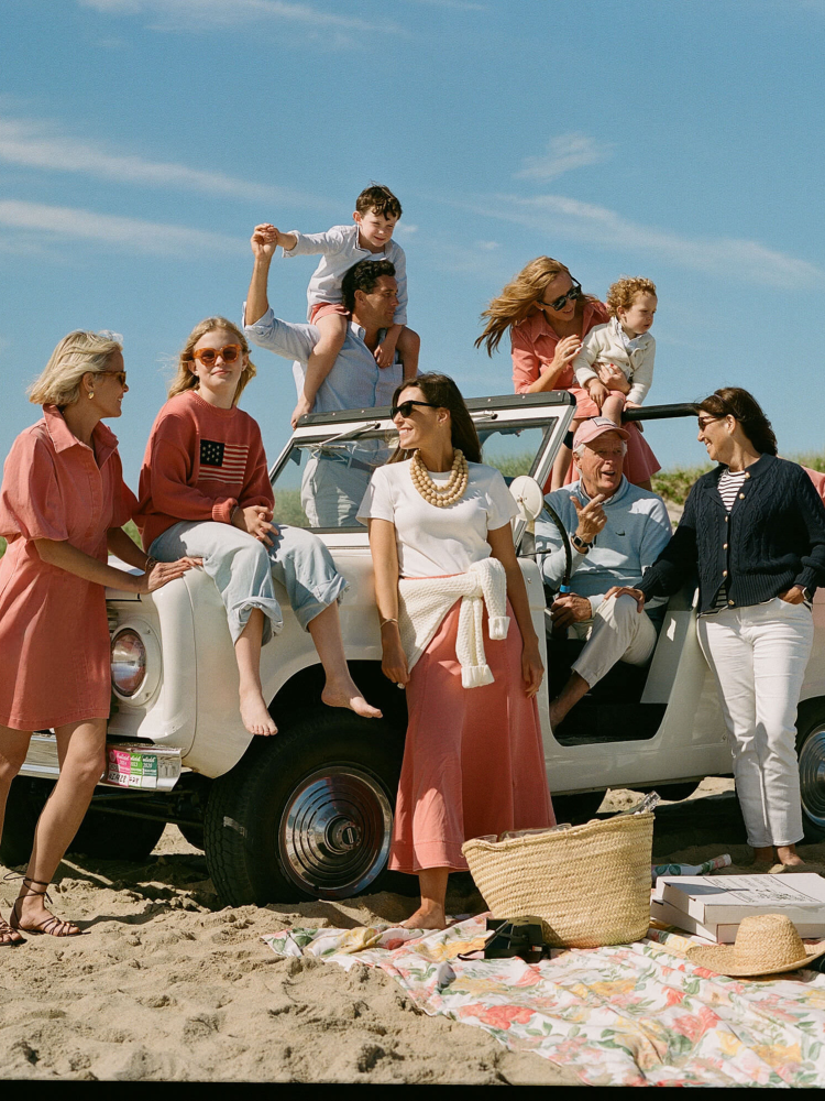 Biking is the preferred mode of transportation on Nantucket, so dressing for the ride is a must. We recolored our iconic Chloe in Nantucket Red so it can go for a quick spin and pull up straight to the party. Stop by Steamboat Pizza on the way to grab a few pies for the kids.