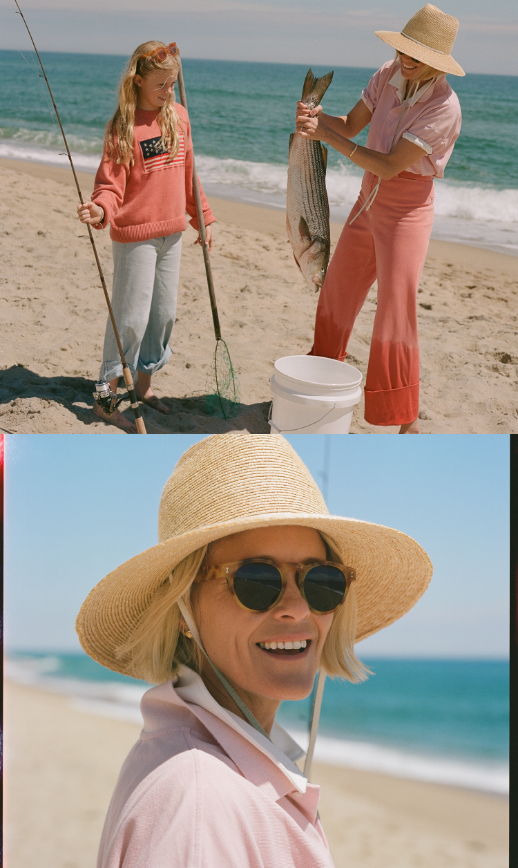 The catch of the season: these wear-everywhere chinos. Whether you’re casting lines off Nobadeer Beach or drying off for dinnertime, these wide-leg pants are a roll-up-and-go, wear-all-day staple. Style them with our baby pink polo for a layered, color-block moment.