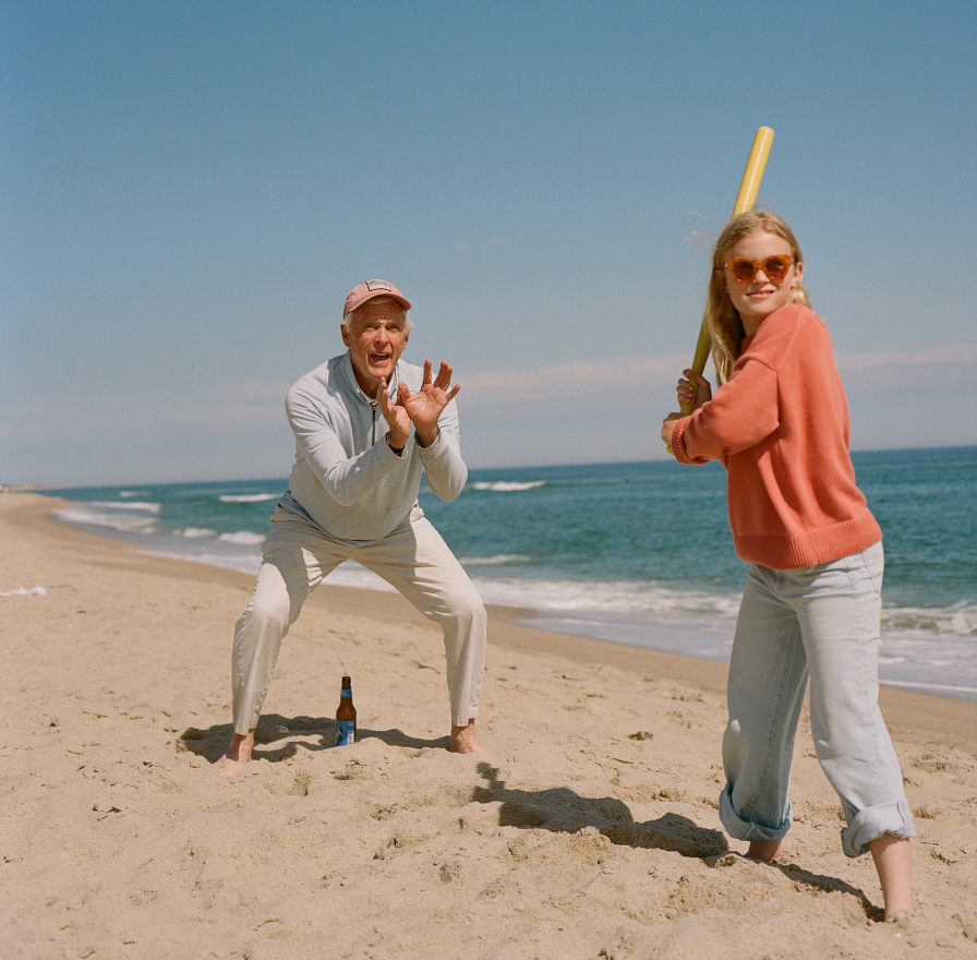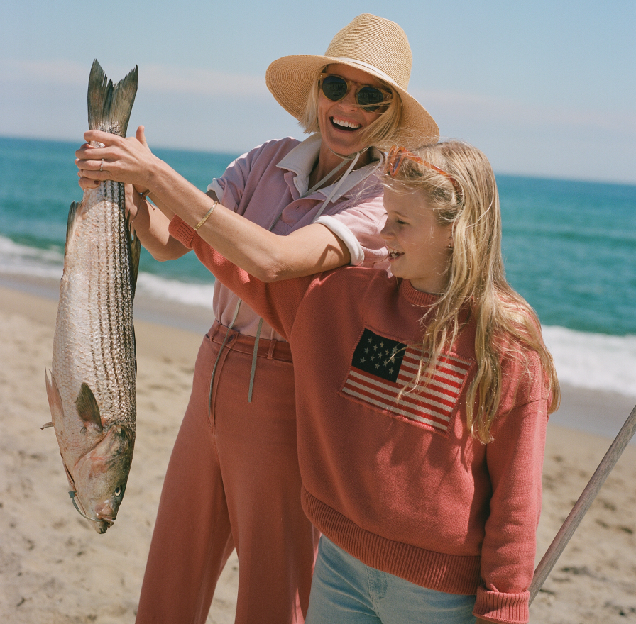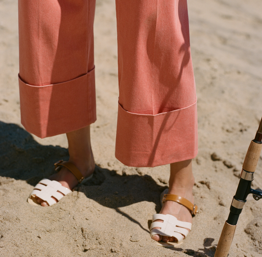 The catch of the season: these wear-everywhere chinos. Whether you’re casting lines off Nobadeer Beach or drying off for dinnertime, these wide-leg pants are a roll-up-and-go, wear-all-day staple. Style them with our baby pink polo for a layered, color-block moment.