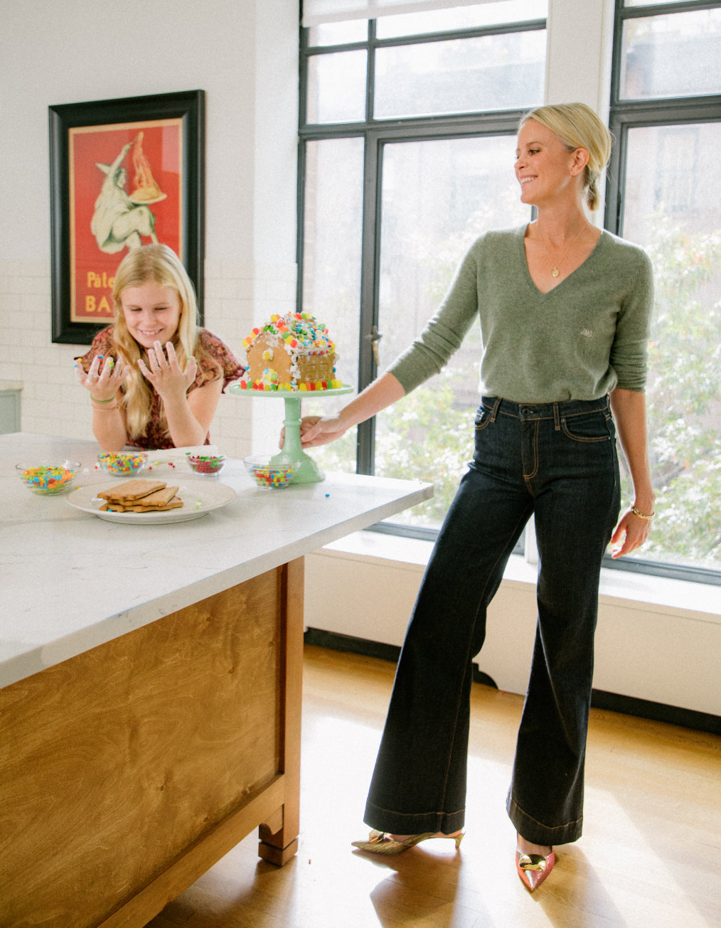 A wide-leg denim from my favorite new brand ASKK NY is a current must-have. Rock it with a v-neck cashmere and a party shoe for a casual cool look.