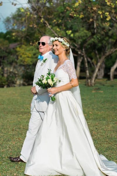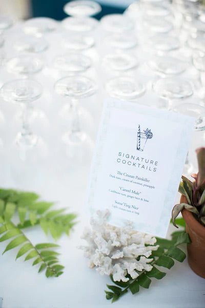 Our Creative Director Sophia recently got married on St. John in her home town of the US Virgin Islands. While she and her husband Adam live in Washington, DC, Adam’s home town, they celebrated in their version of island style, which meant blue and white accents, a sunset sail, Soca music, pelicans, palms, and an evening that ended knee-deep in the Caribbean Sea. Here, she explains every detail, from her invitations all the way to the after party.