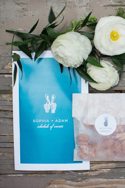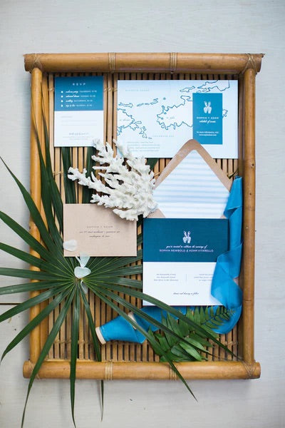 " We chose Caneel Bay Resort on St. John as the venue for its timeless beauty and understated charm. It’s pretty clear that we love blue, so the invitations and welcome bags echoed the soothing color! "