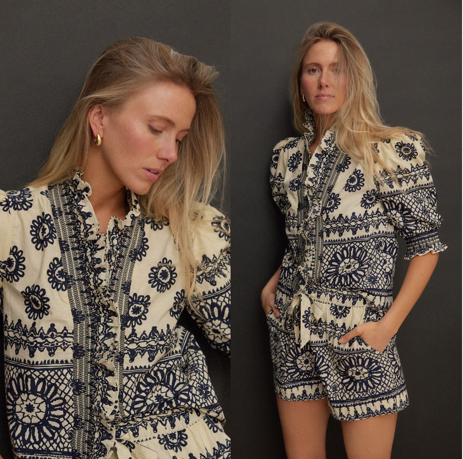 How to style: Go all out with pattern and detail in a cool-girl coordinated set featuring a bold print and ruffled trim.