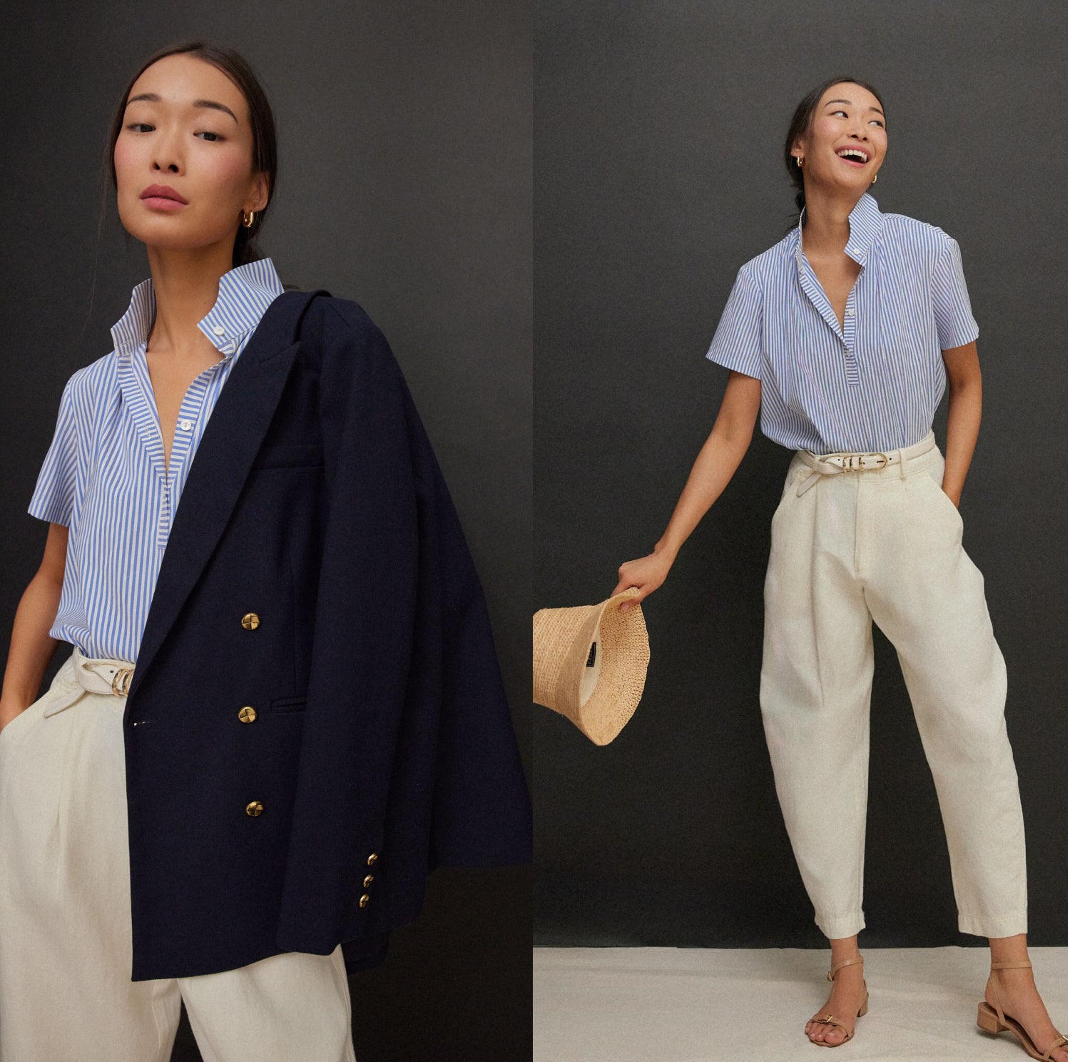 How to style: Menswear-inspired tailoring brings instant polish to a relaxed nautical look.
