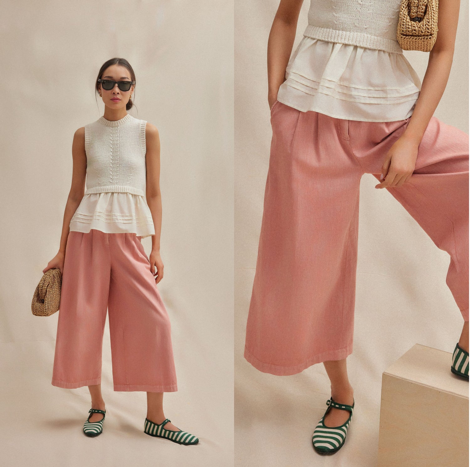 How to style: Double down on easy breezy (and stay comfy through intermission) with a peplum top and extra-wide culottes.