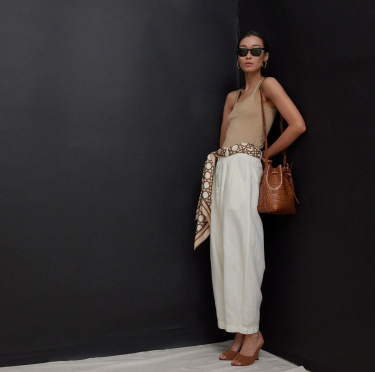 How to style: A cinched waist and feminine accents like a silk scarf offset the classic menswear inspo.