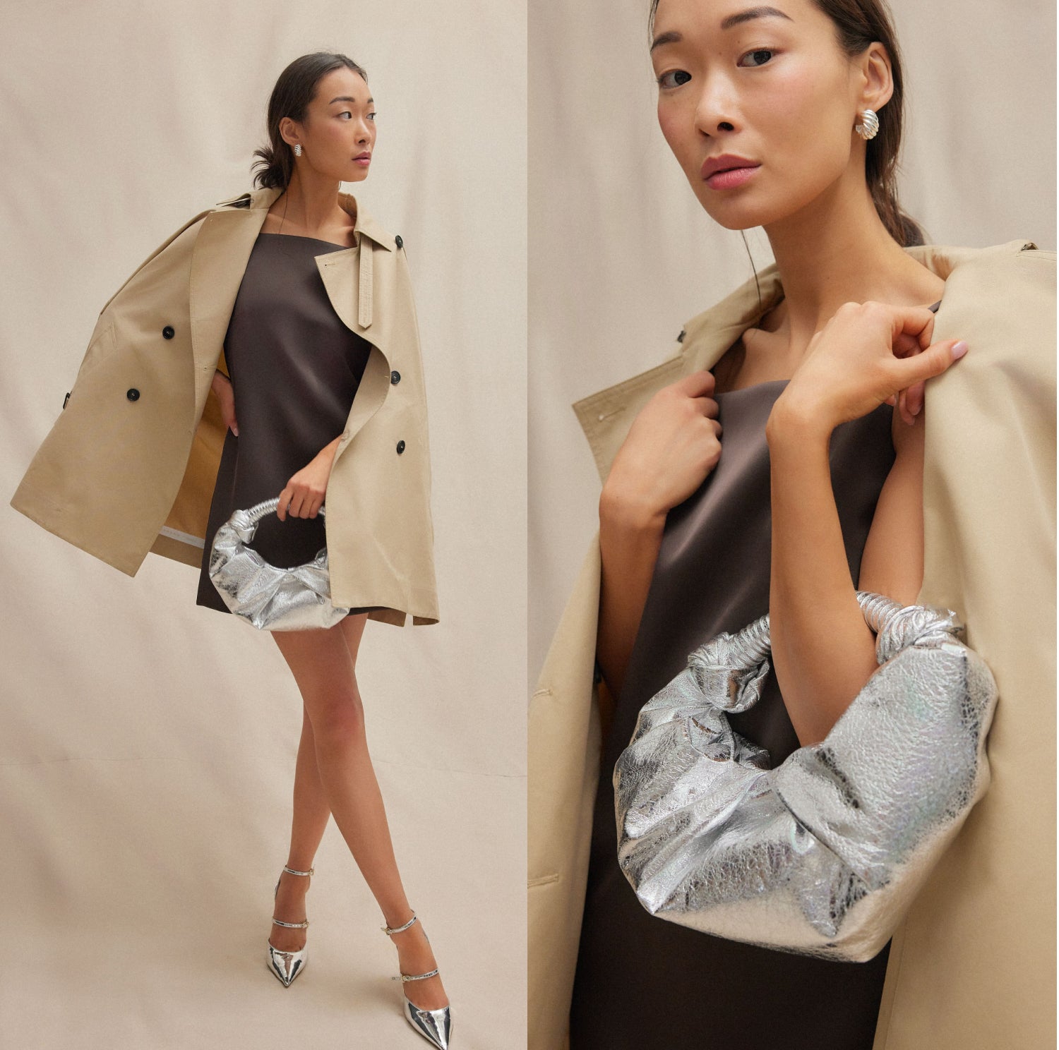 How to style: Give earthy tones an after-hours update with metallic accessories for a little oomph.