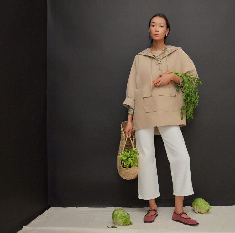 How to style: A cropped wide leg mirrors the boxy fit of the anorak—and shows off your velvet mary janes.