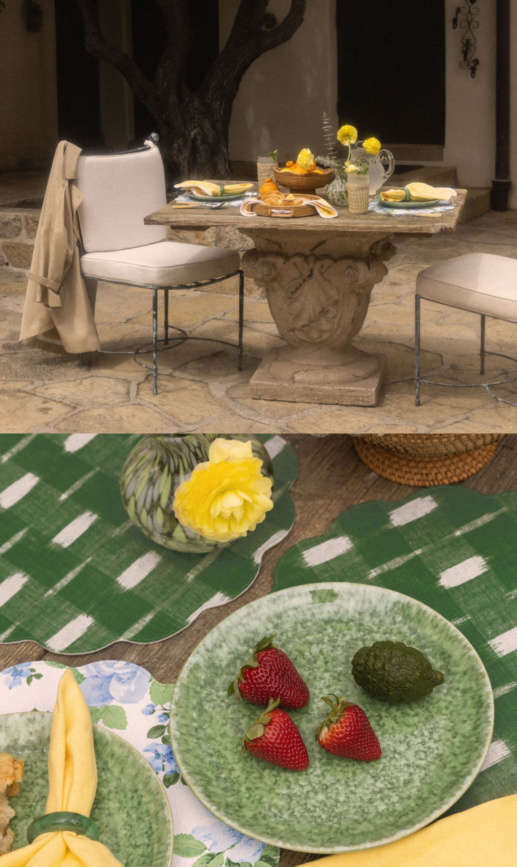 Facts: coffee and croissants just taste better in the sunshine, and our wipeable placemats keep things easy breezy for a low-key, low-maintenance brunch. Pull inspiration from your surroundings with vibrant pops of green and natural textures like seagrass and rattan.