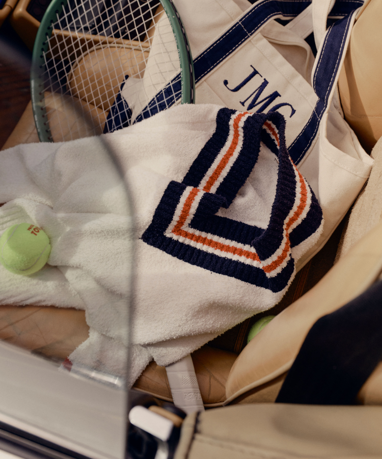 When you’re ready to hit the road after the final match, a monogrammed canvas tote is a go-to catchall for your racket and a change of clothes.