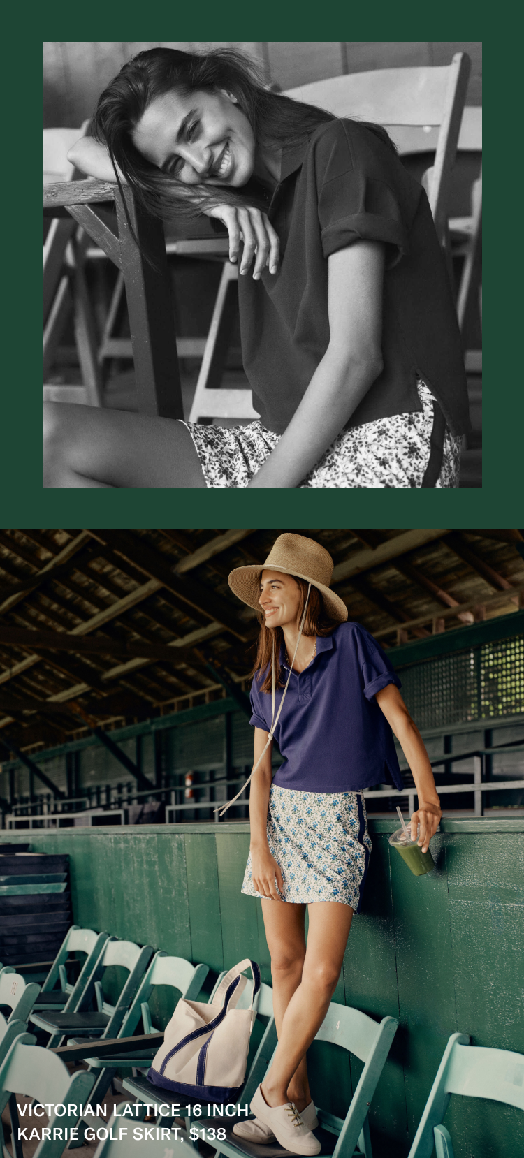 Made for a summer at play, let this collection inspire you dust off your clubs, swing your racket, and get out there and move.