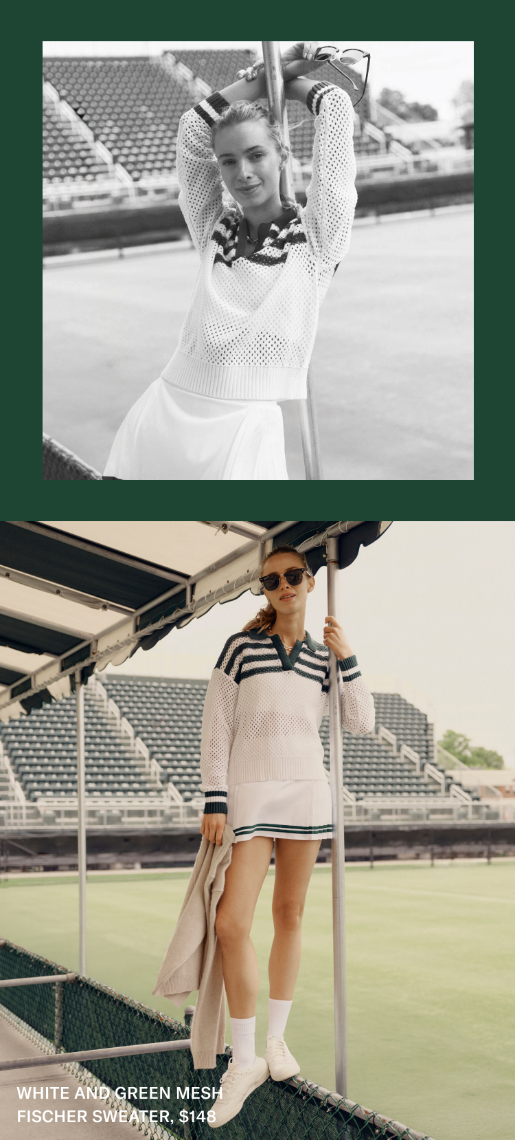 Play hard, dress effortlessly. Our new sport collection is all about throwing it back, blending 70s style influences with a classic Americana twist. Whether you’re serving, swinging, or spectating, these performance pieces are made to move.