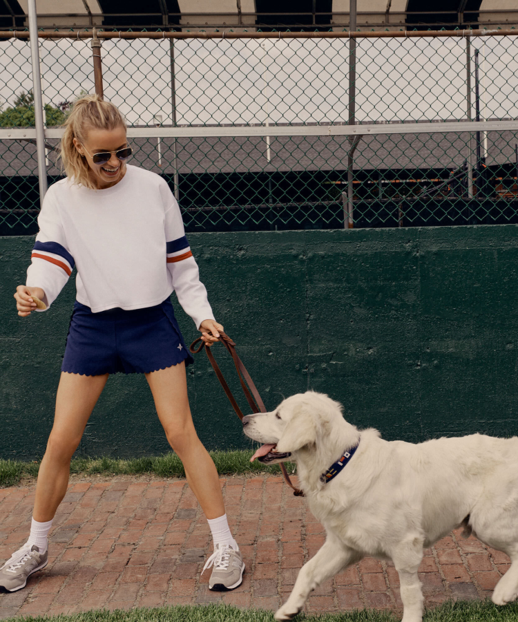 Throw a cropped sweatshirt over scalloped shorts and you’re ready for a training session with your hitting partner, daily steps with your pup, or your morning coffee run.
