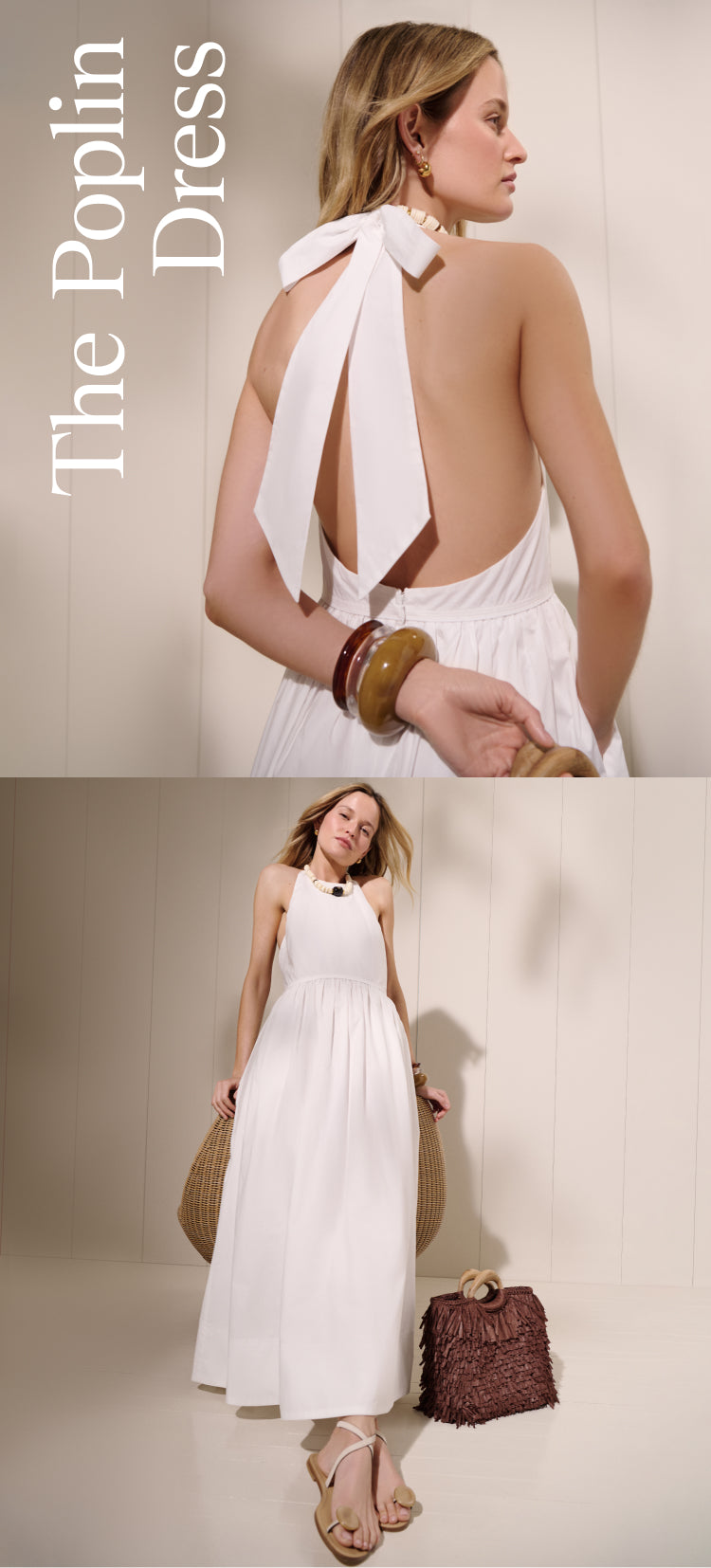 A white cotton dress is quintessential summer. It’s a blank canvas with endless styling opportunities—plus, this high neckline is universally flattering and made for a statement necklace.