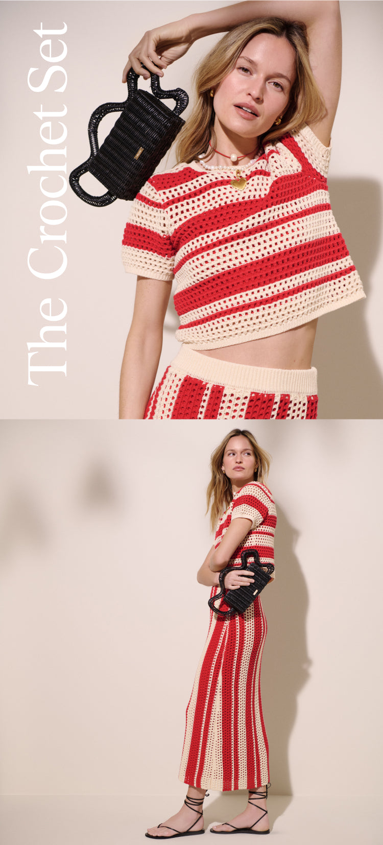 Everyone needs a set for summer. Make yours on-trend with boho crochet and unexpected black accessories.