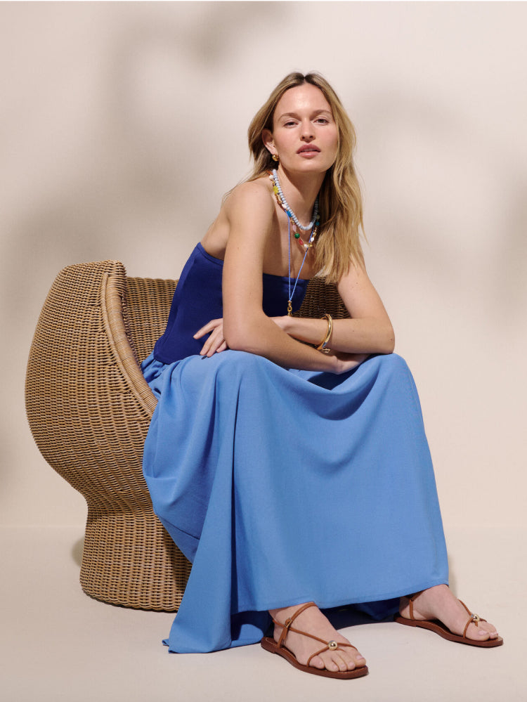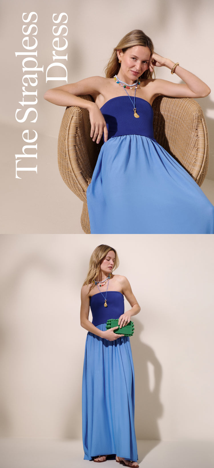 Need an excuse to show off (or get) sun-kissed shoulders? Throw on a strapless dress, then layer necklaces and strappy sandals for a laid-back feel—like you’re on the Riviera (even if you’re just going to dinner).