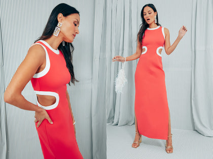 Cutouts are here to stay, and so is this eye-catching coral hue. Add some drama to your next cocktail party with this fun and flirty piece from cool and contemporary brand STAUD.