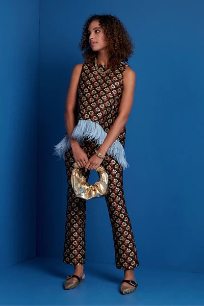 On-trend cutouts and a burgundy hue make this the top you’ll choose for after-dark affairs. Style tip: try color blocking with a pale clutch.