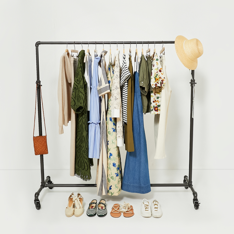 Channel your inner stylist and hang each garment on a rolling rack before you go. This makes it easy to see every outfit at once, so you don’t have to worry about them on location.