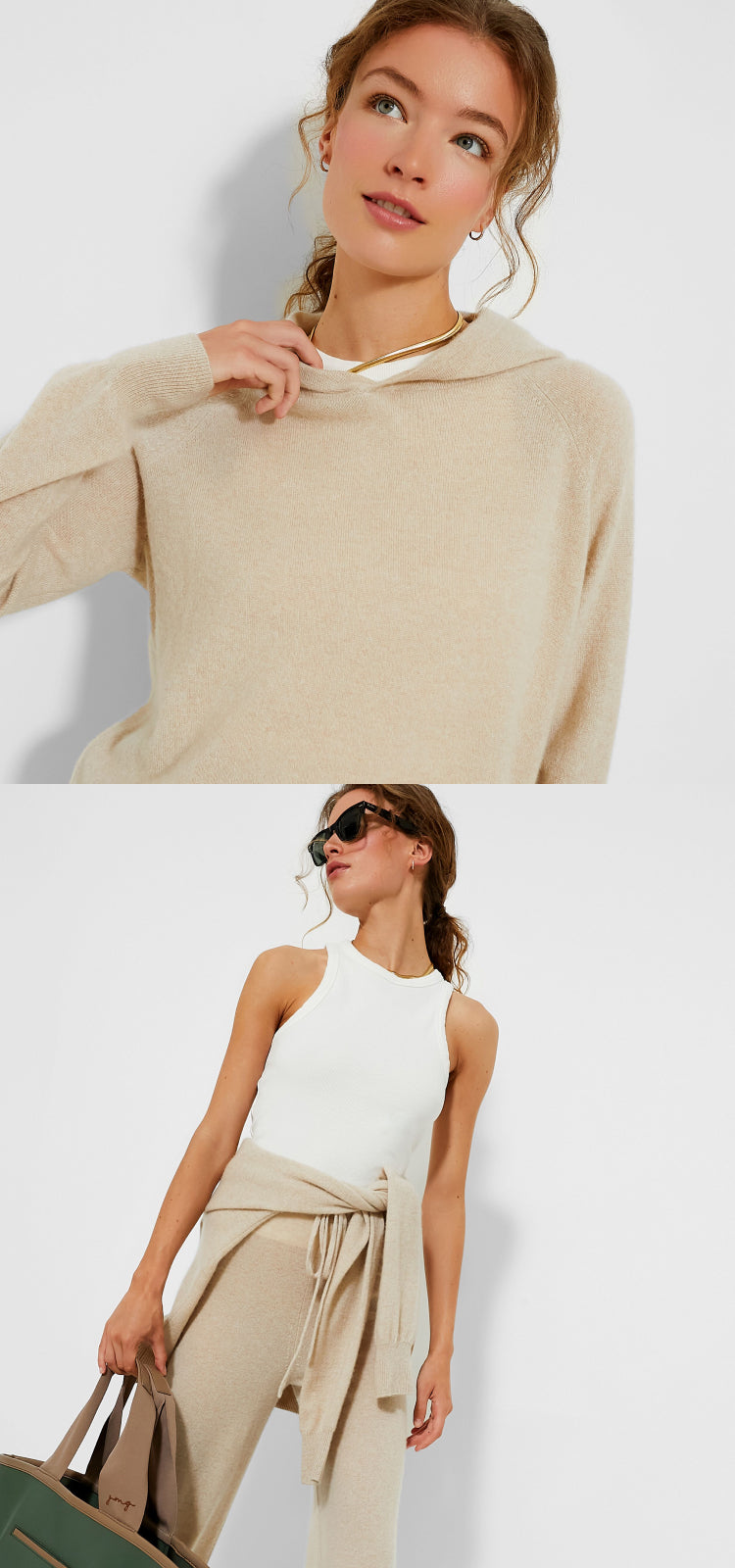 No matter your destination, easy and comfortable is the motto to live by for long-haul trips. Start on the plane with a cozy cashmere set, basic layering tank, and lightweight flats that can be worn throughout the trip.