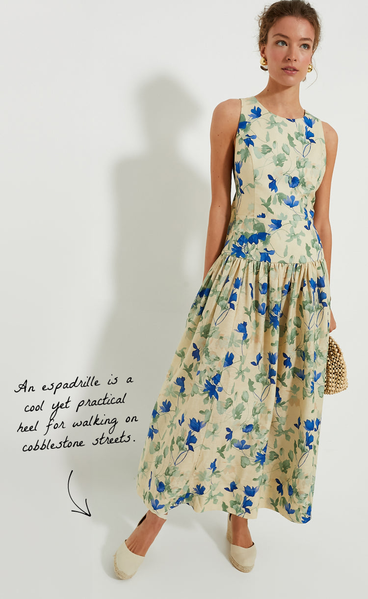 The easiest way to maximize space in your suitcase is to pack looks that transition from day to night. While you naturally can’t do this the whole time, be strategic with midi dresses for days when you’ll be spending most of your time inside (museum tours, cooking classes, shopping). Then you can swap your accessories and have a new look come dinnertime.