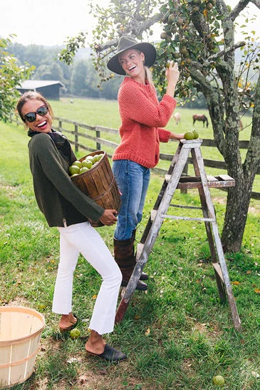 In the garden abutting acres of stables, we head out to pick some pears in chunky cableknit and pretty plaid