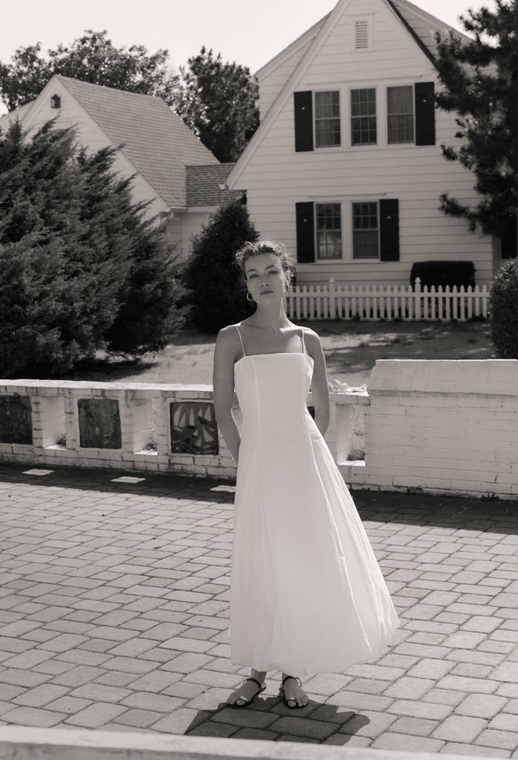 For the bride-to-be or modern minimalist, a white dress is the epitome of summertime ease. Try it with black sandals for a chic contrast.