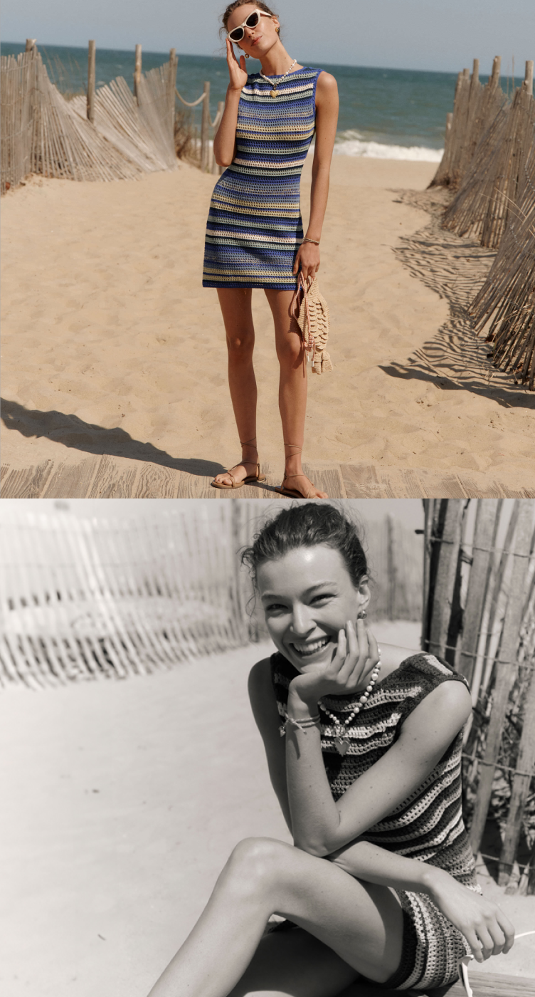 We’re all about a summer stripe, so why not reinvent them with one of our favorite warm-weather trends? A crochet mini works as a cover-up, day dress, or date night look.
