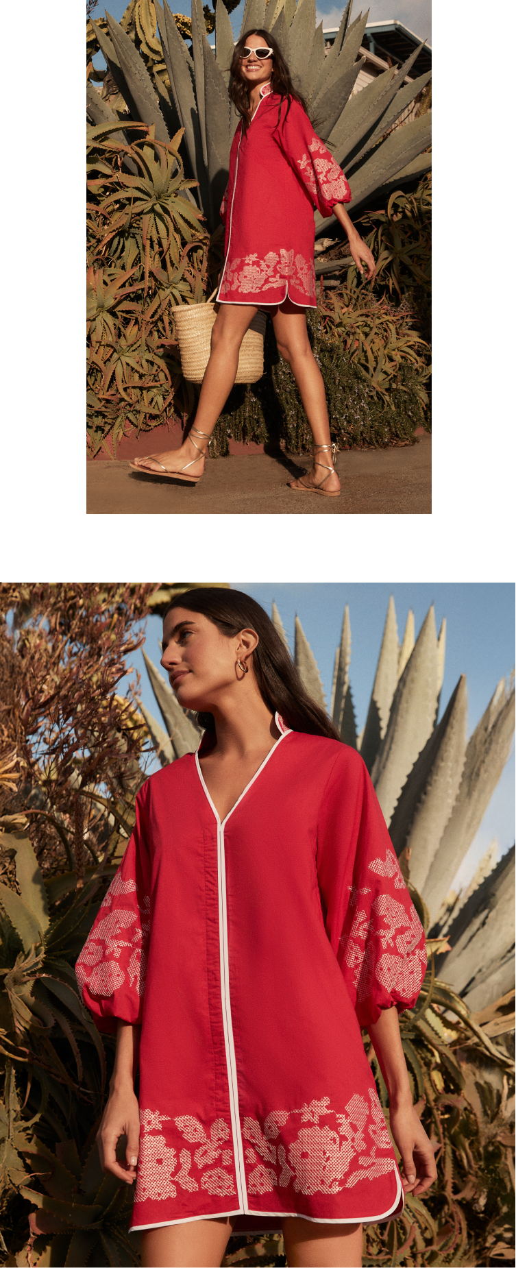 Dress, cover-up, or both? A throw-on-and-go caftan in cherry red brings the ease and polish to summer days.