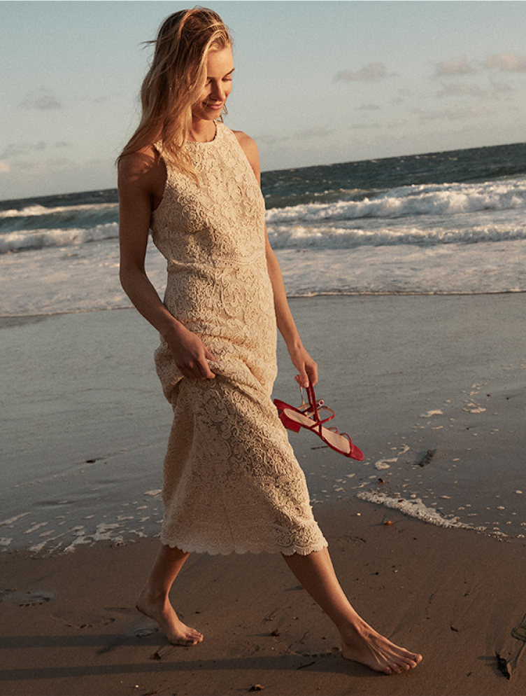 A day of sightseeing and sunbathing calls for an airy lace mini.