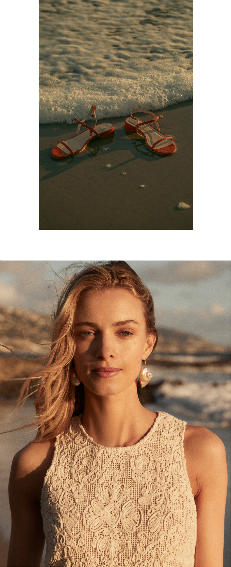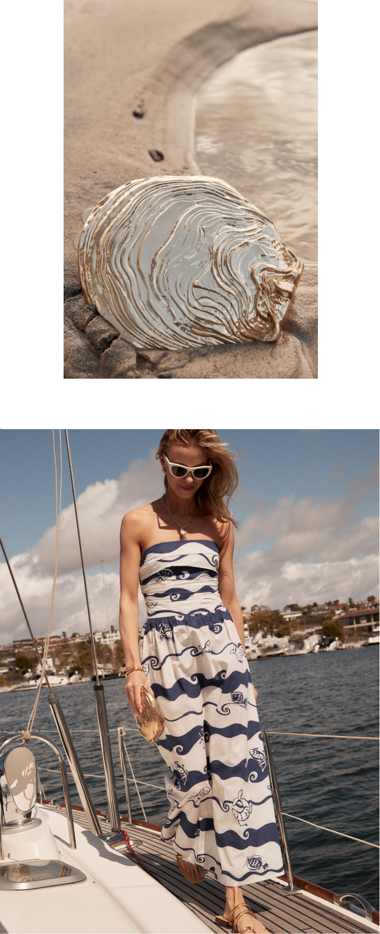 Summer’s sleek statement dresses are best accessorized with salty hair and on-theme jewelry.