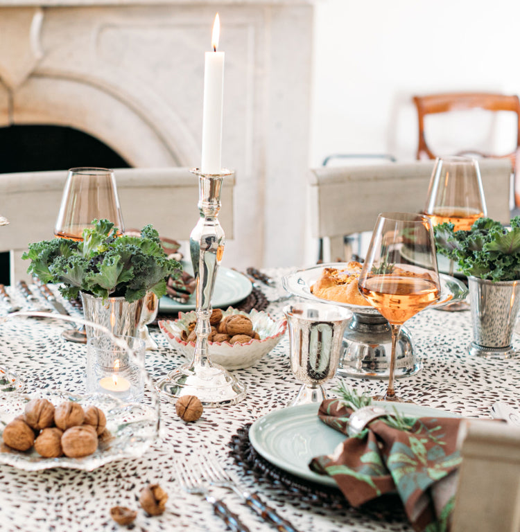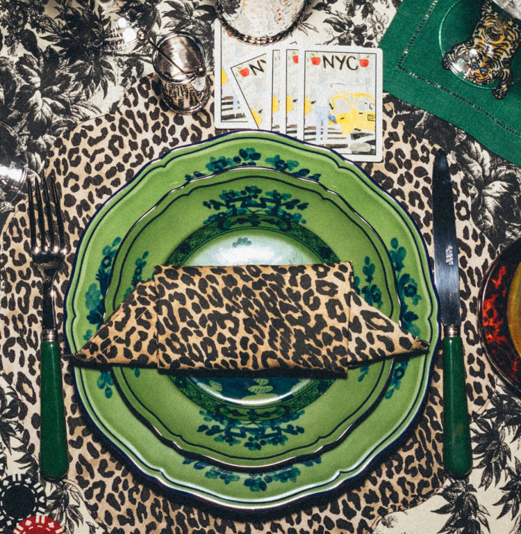 Up the ante on pattern and set a decadent table with our leopard placemats and malachite porcelain plates. Your party animal crew will totally appreciate the print mixing (and the fancy martini glasses).