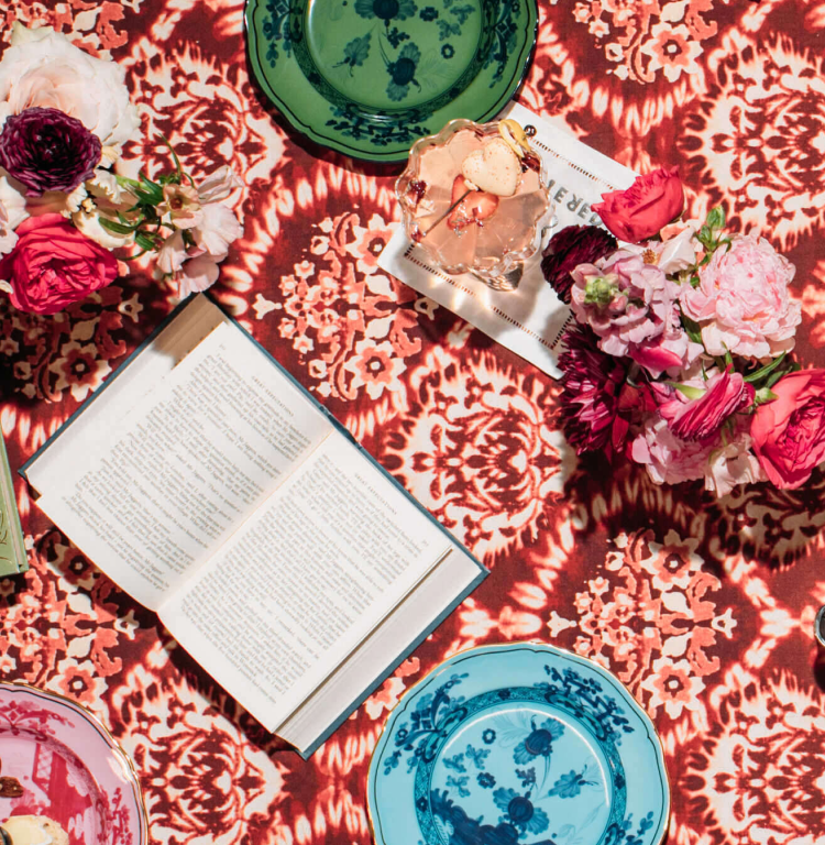 Set a bold table with mix-matched dinnerware and florals that pop. Your monthly meet-up calls for statement-making color and a stunning charcuterie board (aka the true protagonist of the evening).