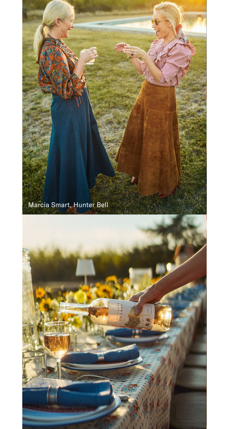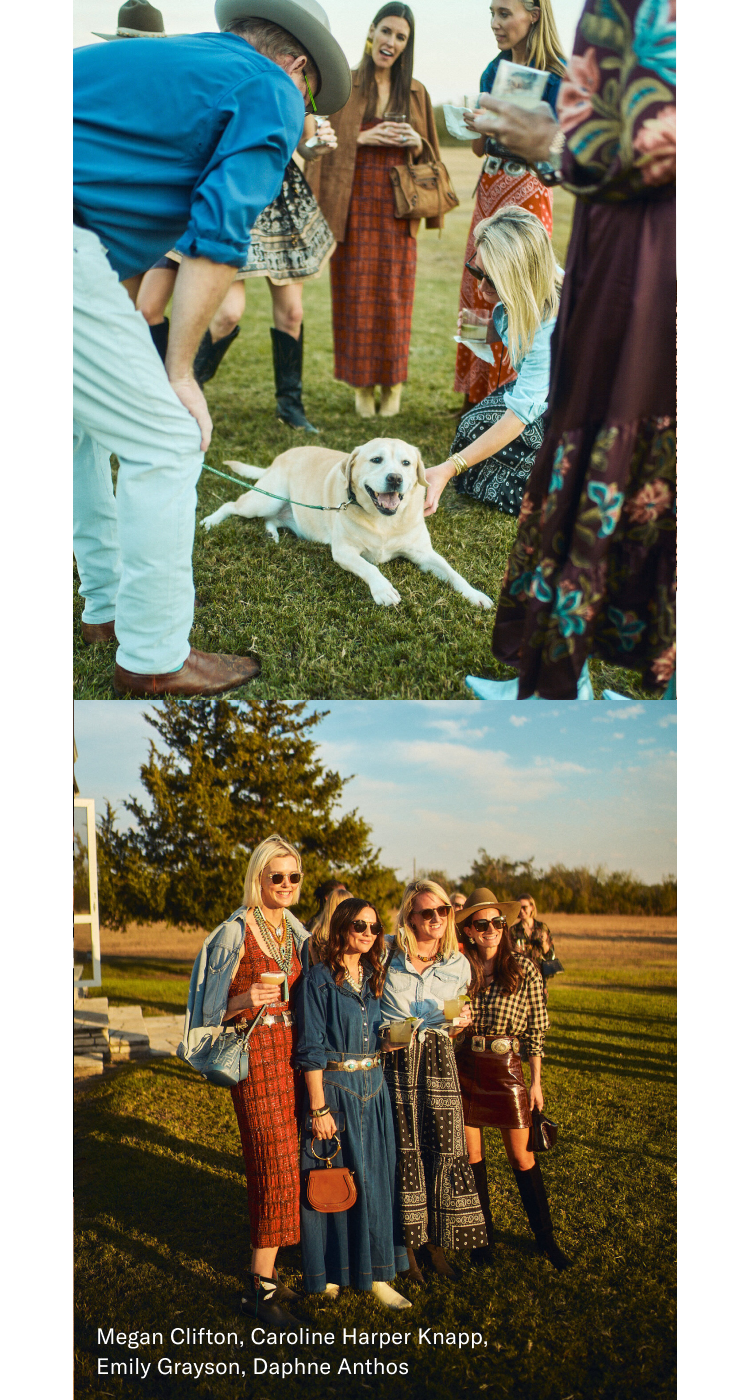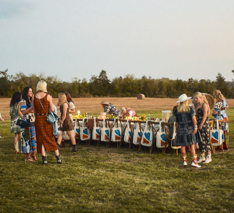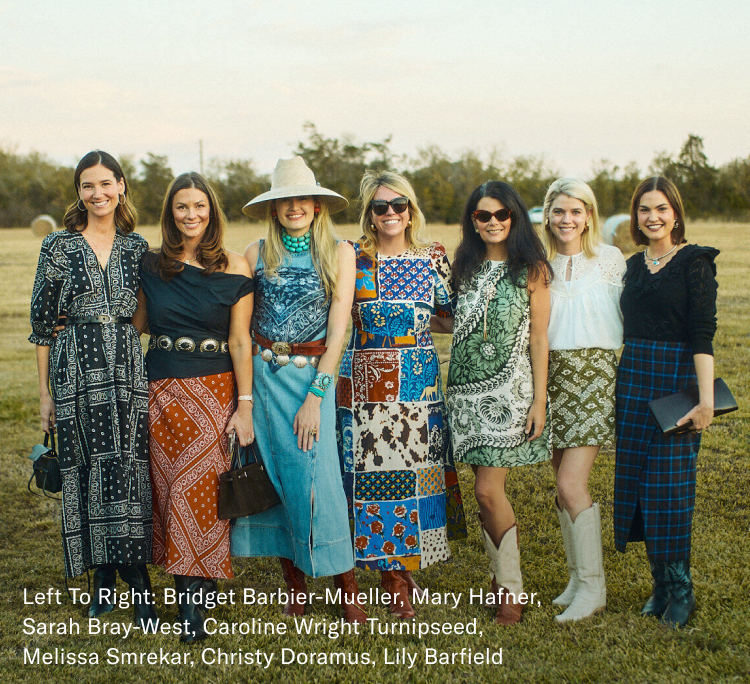 About forty women—artists, vintage collectors, interior designers, and friends—road-tripped across Texas arriving just in time for golden hour. Everyone showed up in their best Tuckernuck and Hunter Bell looks. The result captured the spirit of the setting: colorful, collected, and one-of-a-kind.