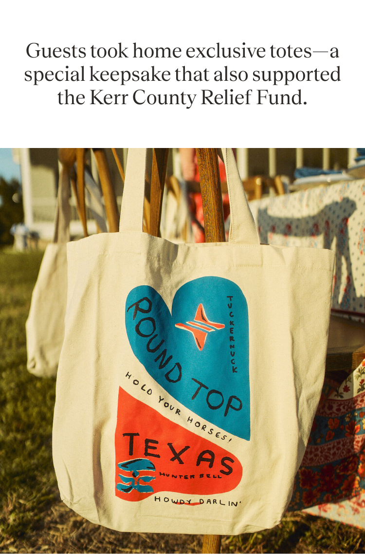 Guests took home exclusive totes—a special keepsake that also supported the Kerr County Relief Fund.